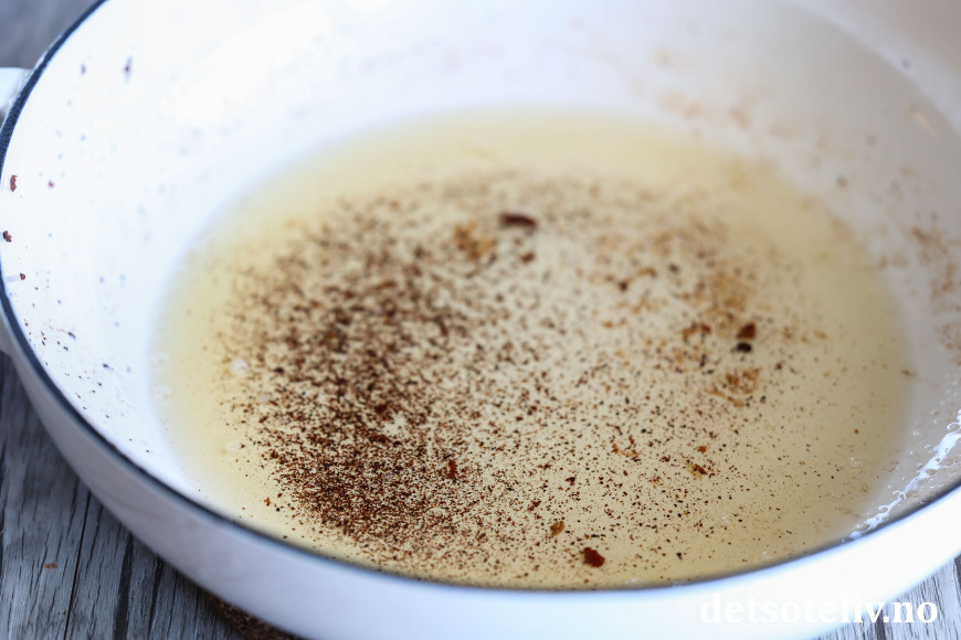 Ta kjøttet ut av pannen, men la fettet bli igjen i pannen.