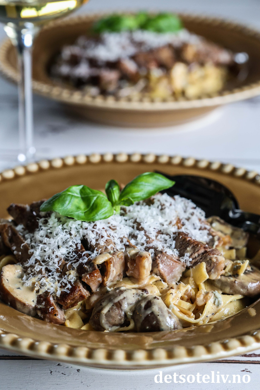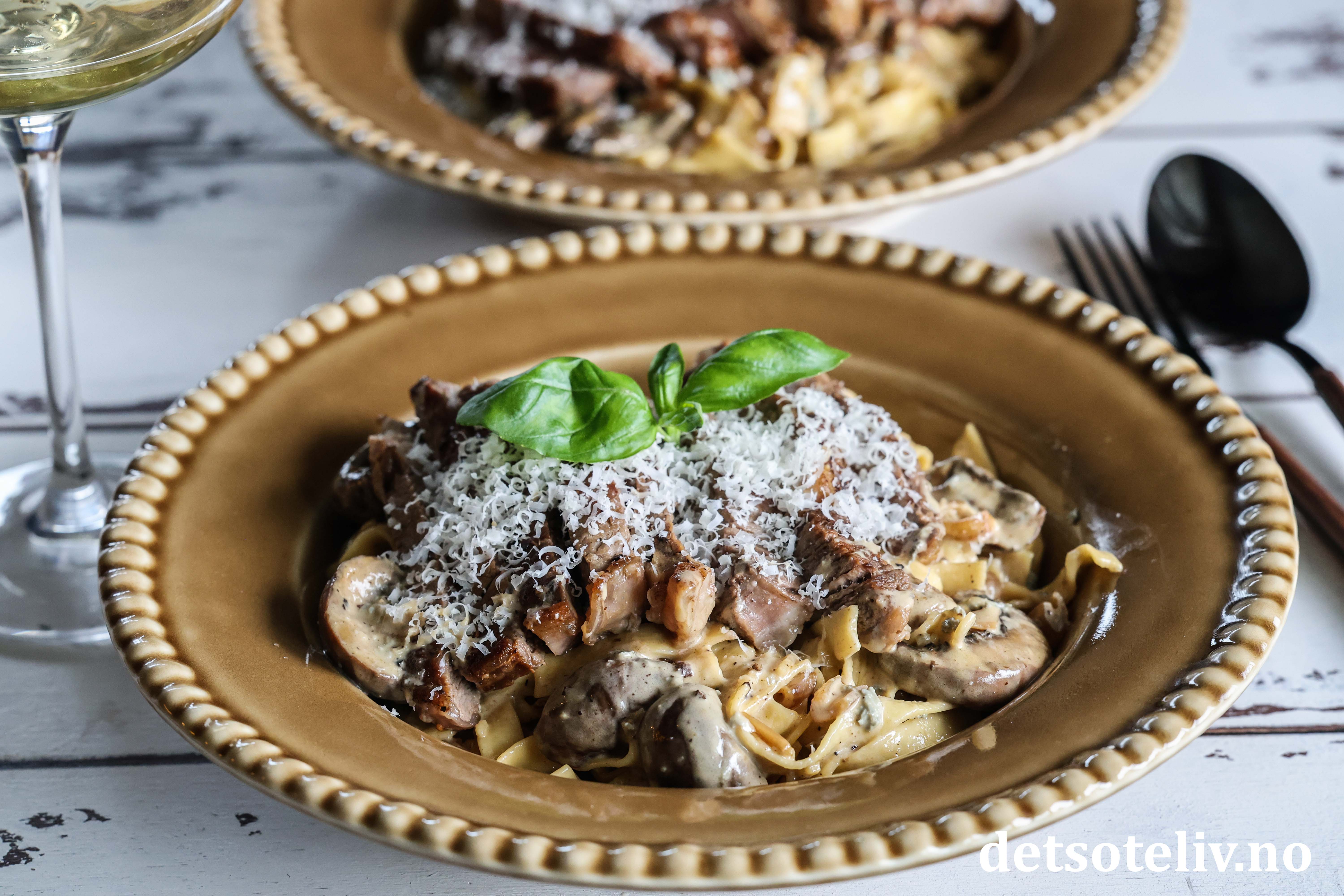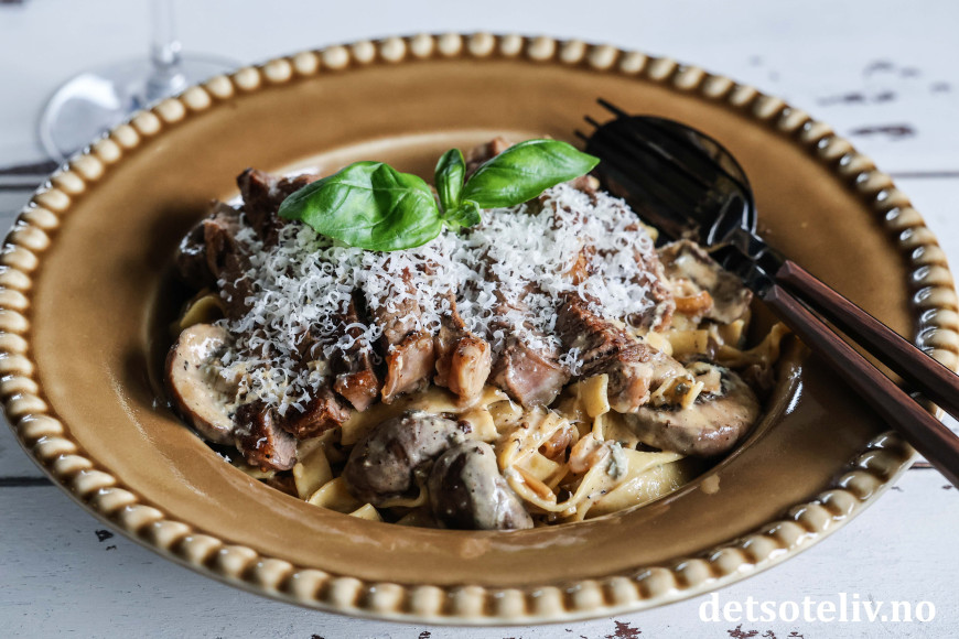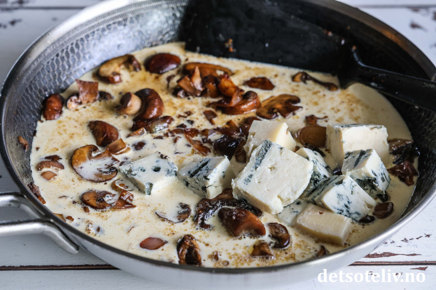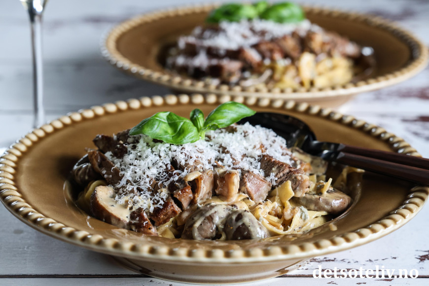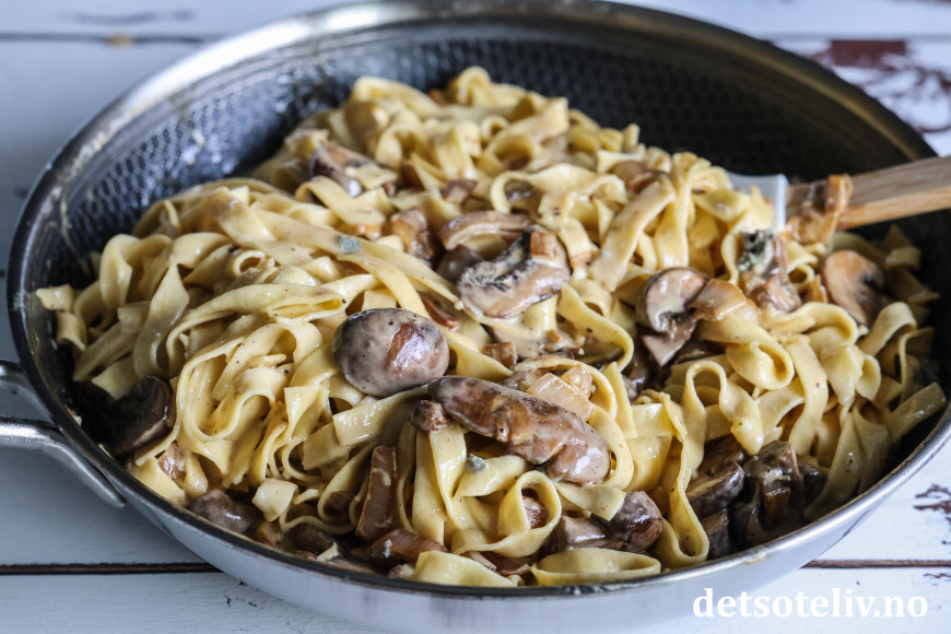 Se også oppskrift på Kremet pasta med sopp og gorgonzola, som er en vegetarrett.