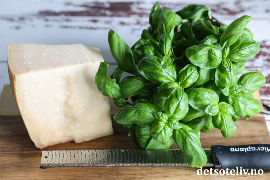 ♥ Bruk ferskrevet parmesan og frisk basilikum som topping for god smak!