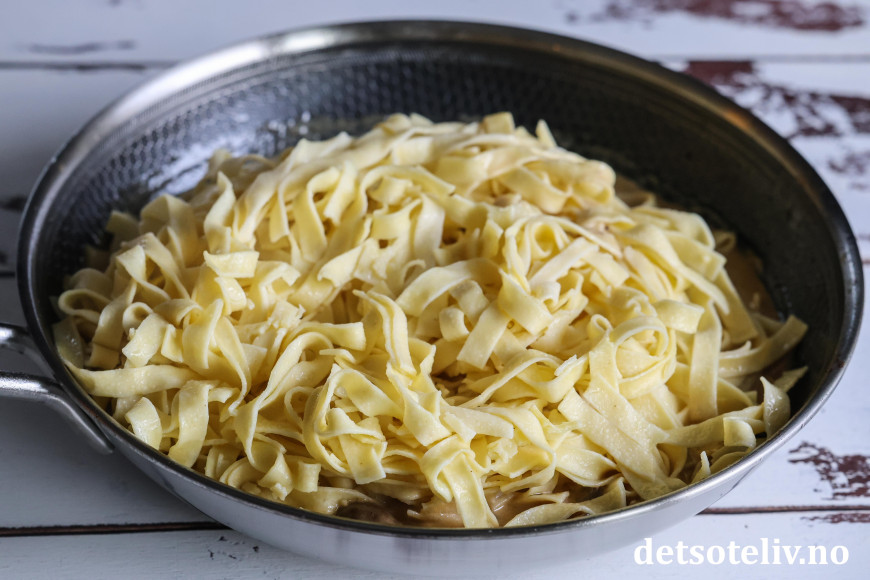 ♥ Jeg bruker her pastatypen tagliatelle, som er flate båndspagetti, men det går like fint å bruke andre varianter pasta (for eksempel fettuccine, linguine eller vanlig spagetti).