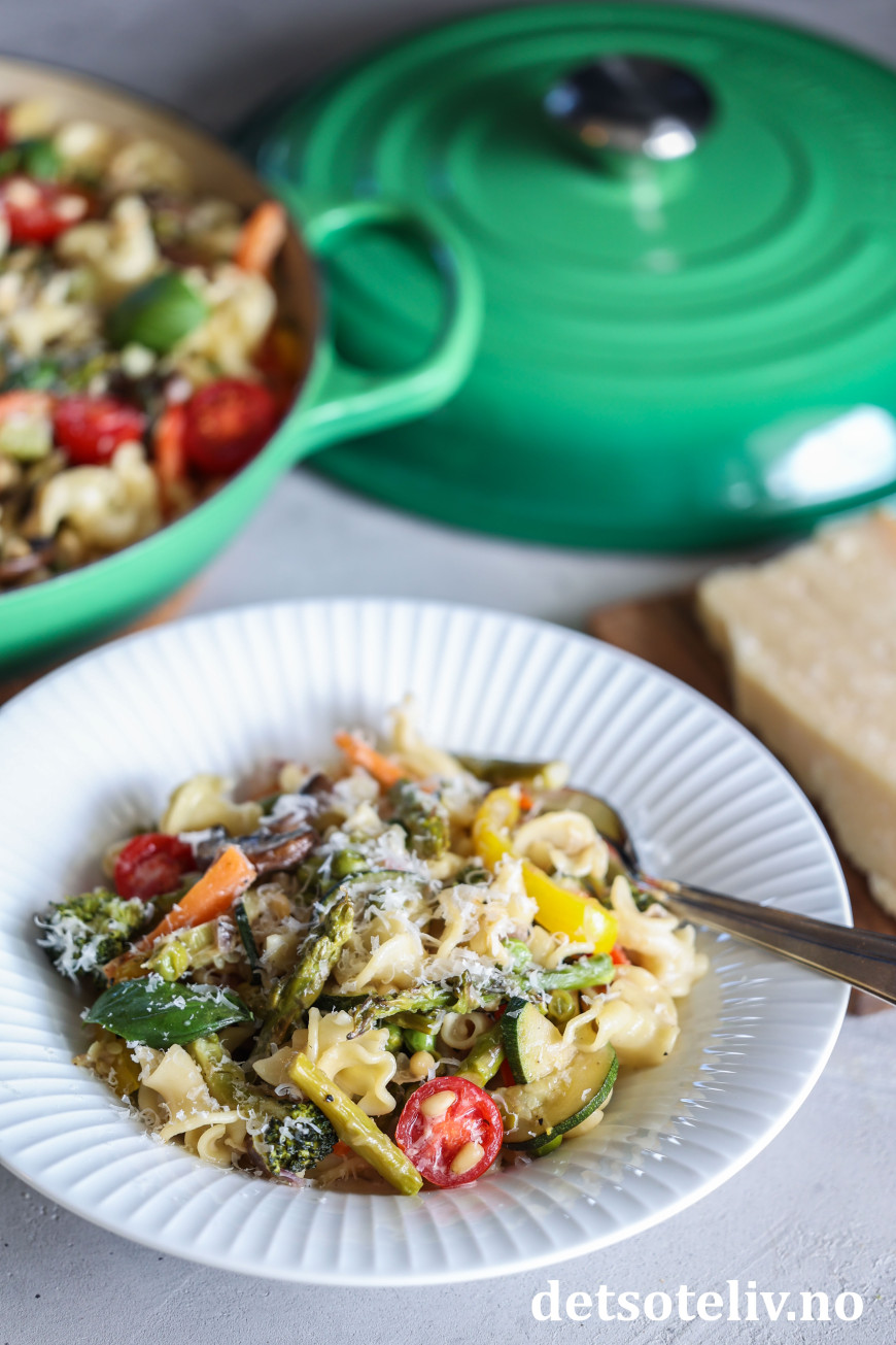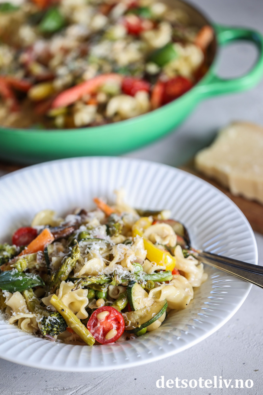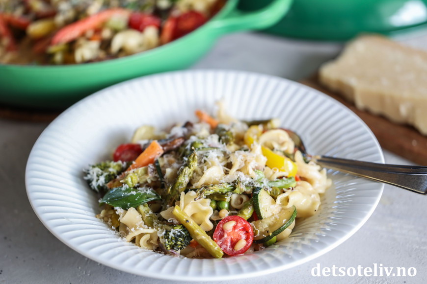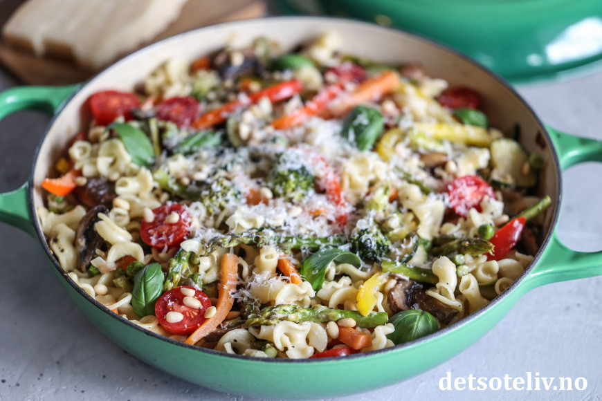 Hvis du vil få i deg 10 grønnsaker i en eneste smakfull middag, er et godt tips å lage en deilig Pasta Giardino! 😃