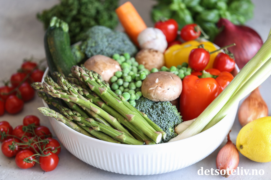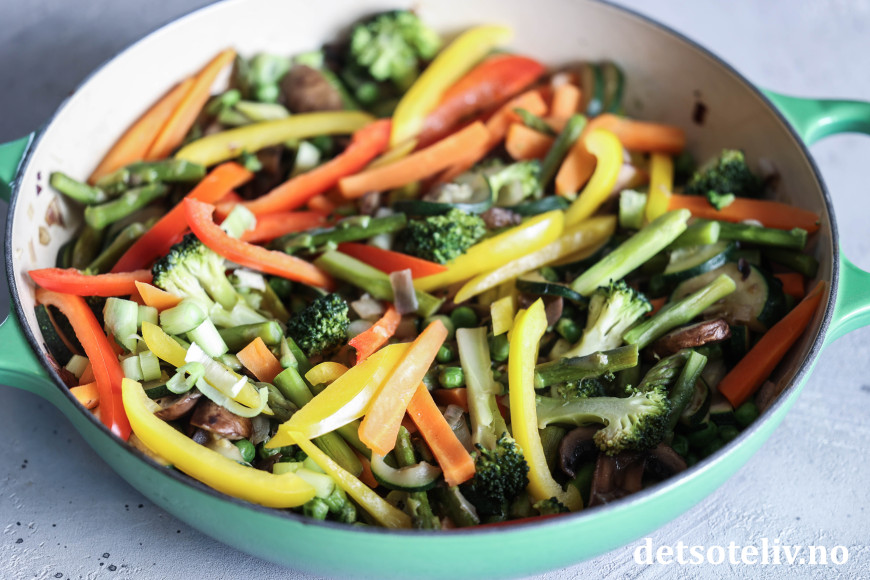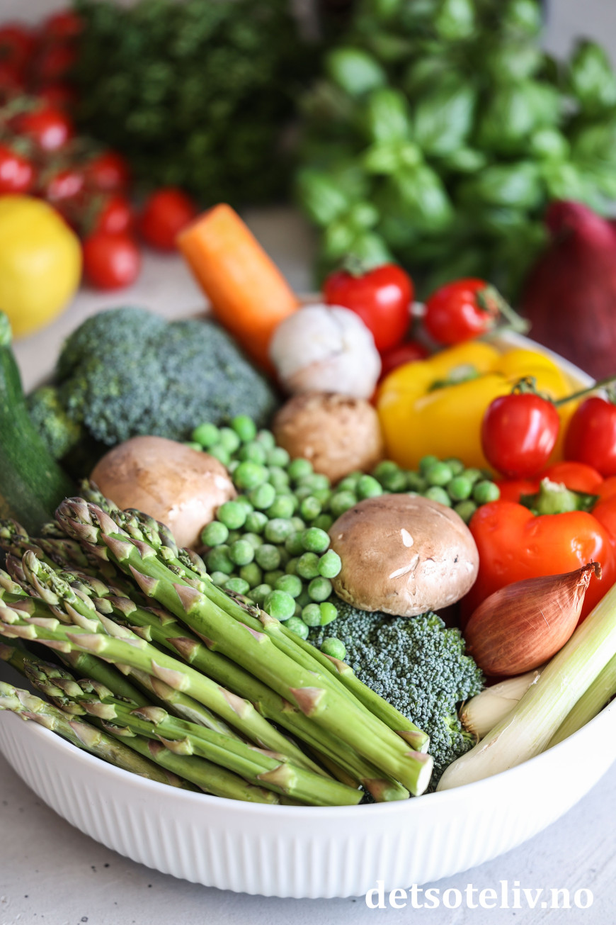 ♥ Mengde og type grønnsaker i denne oppskriften må du bare se på som veiledende. Du kan variere med ulike typer grønnsaker og bruke de mengdene du har.