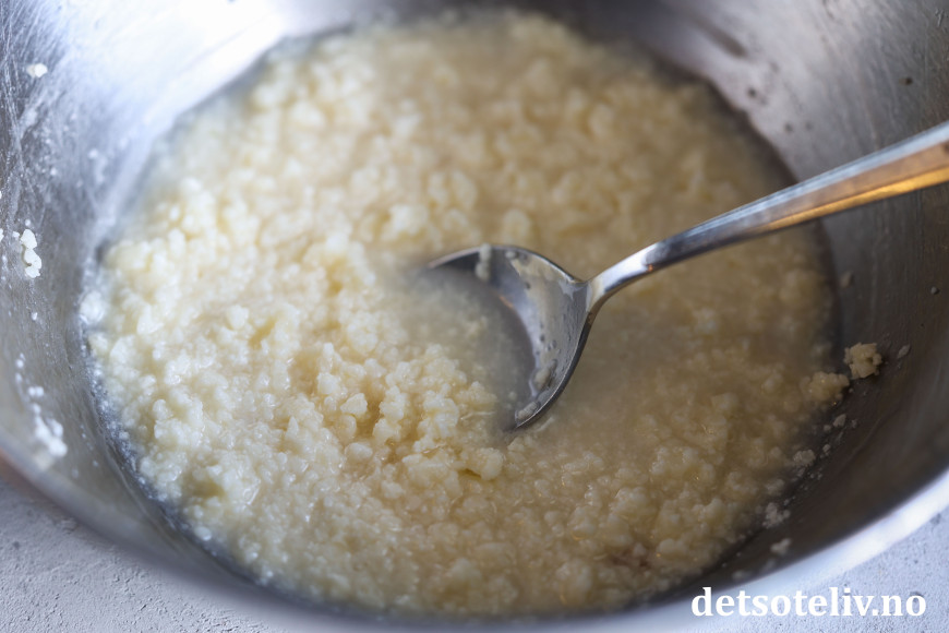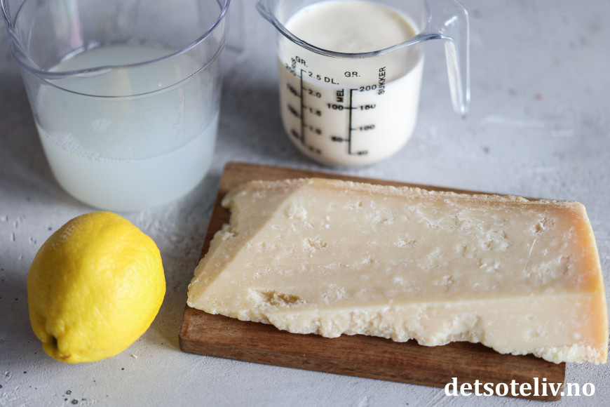 Ta til side ca 2 dl pastavann. Riv parmesanen og rør den sammen med det varme pastavannet (se tips).
