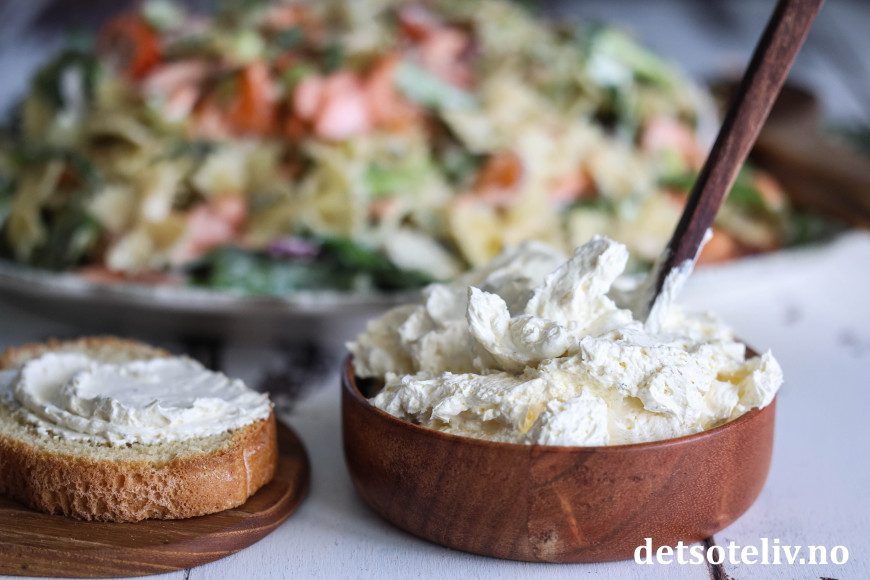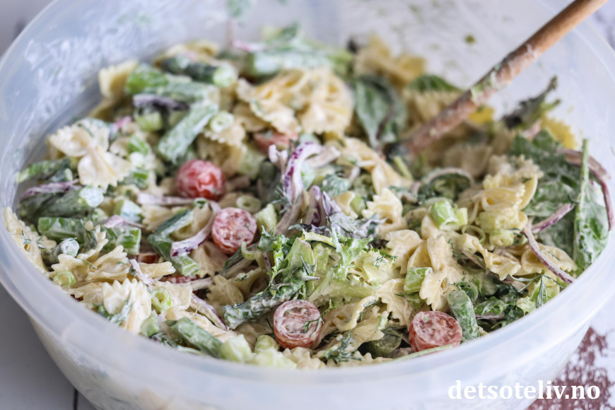Rømmedressingen gjør pastasalaten ekstra god!