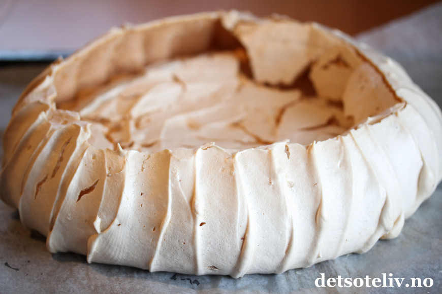 ♥ Vil du lage kant på marengsbunnen som jeg har laget her, bruker du bare baksiden på en spiseskje og lager striper i marengsen langs kanten før steking.