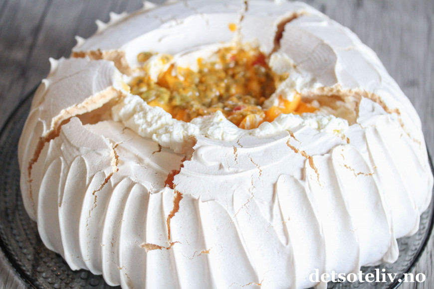 Denne pavlovaen er lett og luftig, og smaker både søtt og eksotisk!