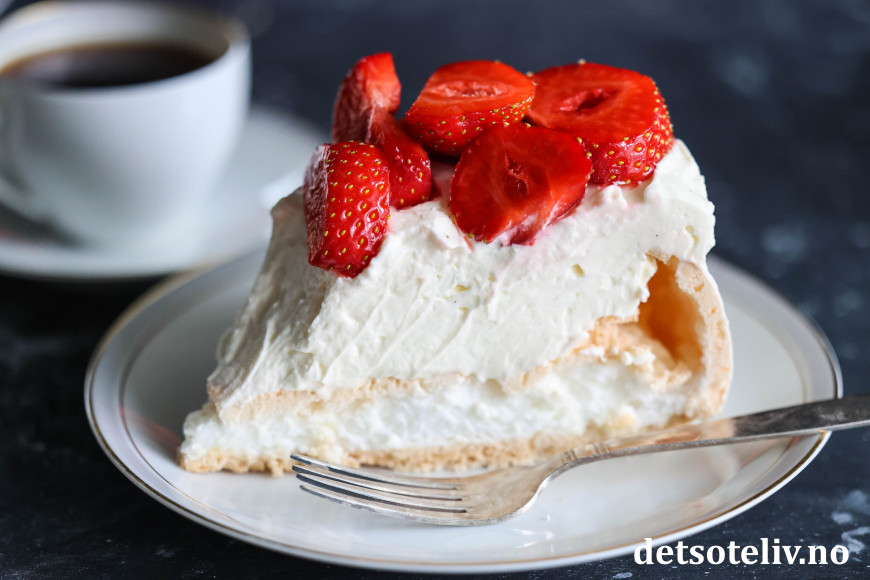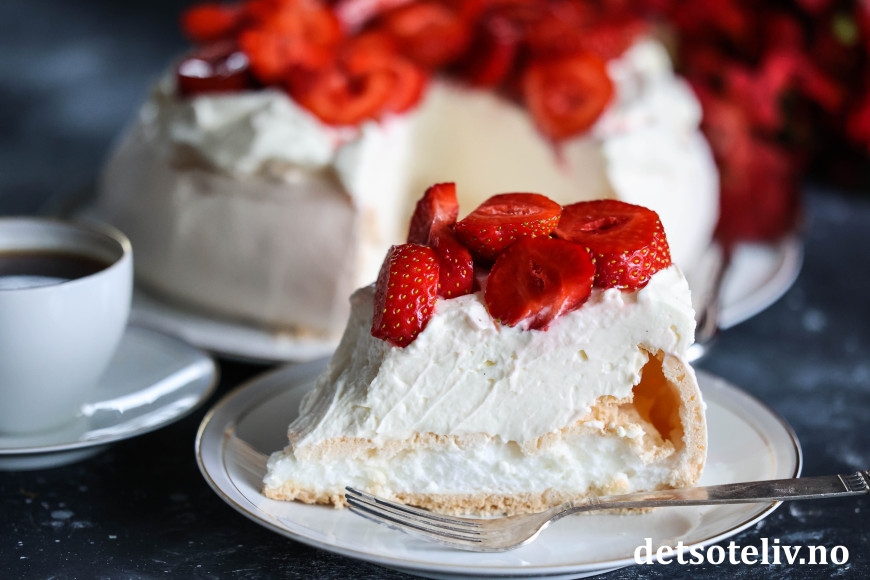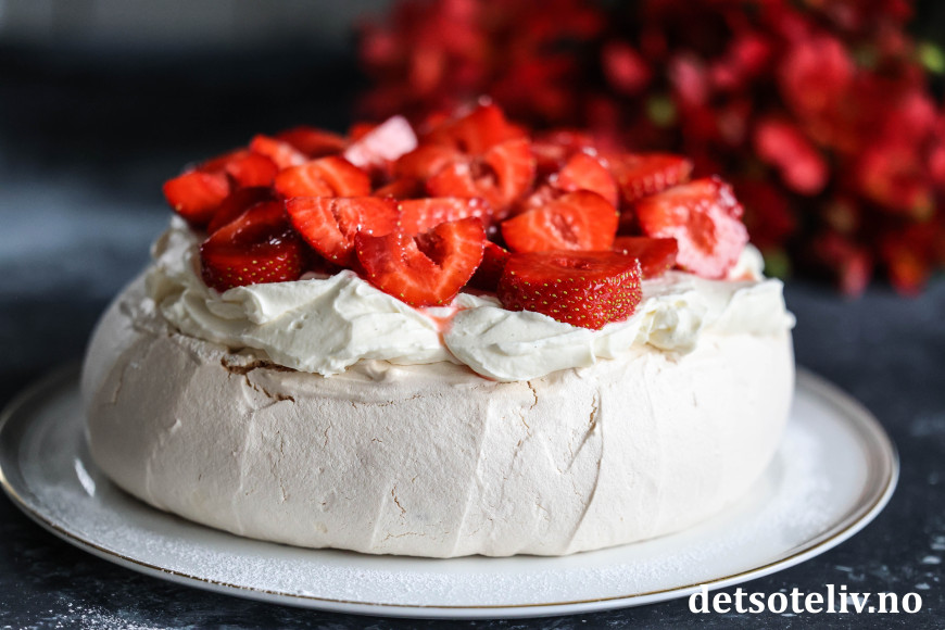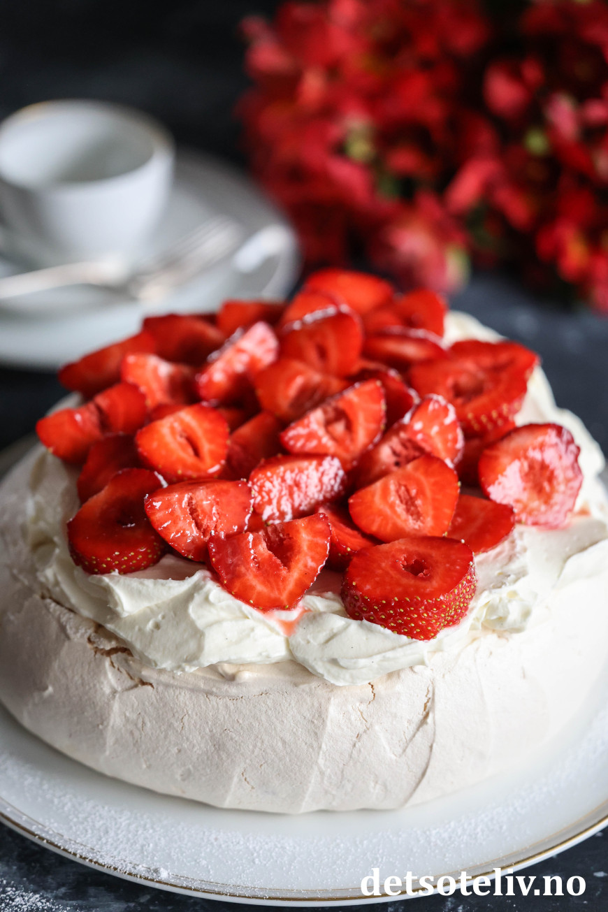 Se også Jordbærpavlova og Minipavlova med jordbær, der jeg har brukt luftig, pisket fløtekrem.