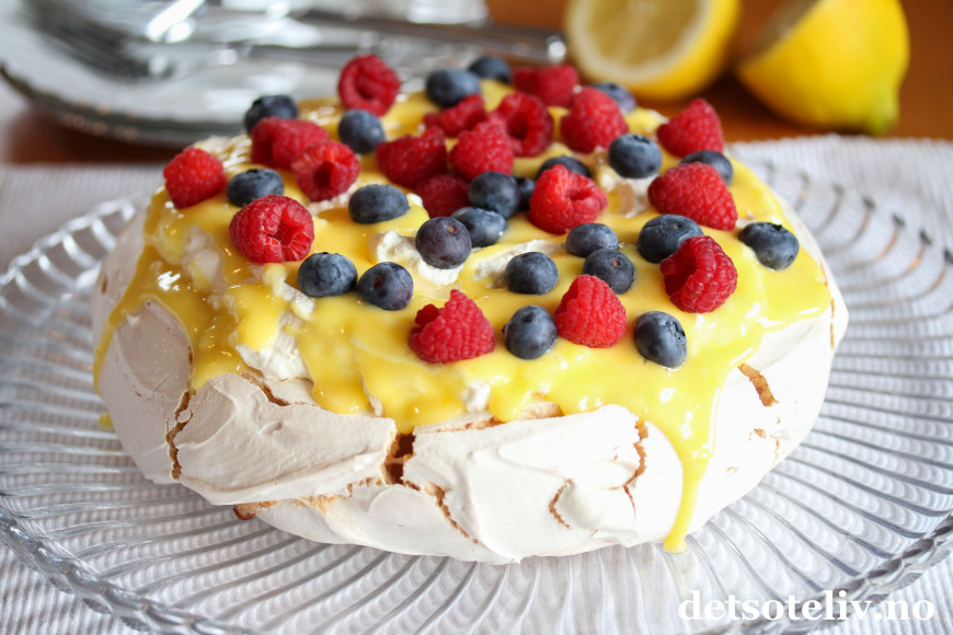 Kaken kan varieres på utallige måter, og denne versjonen med sitronkrem i tillegg til pisket krem og bær, er blant de beste!