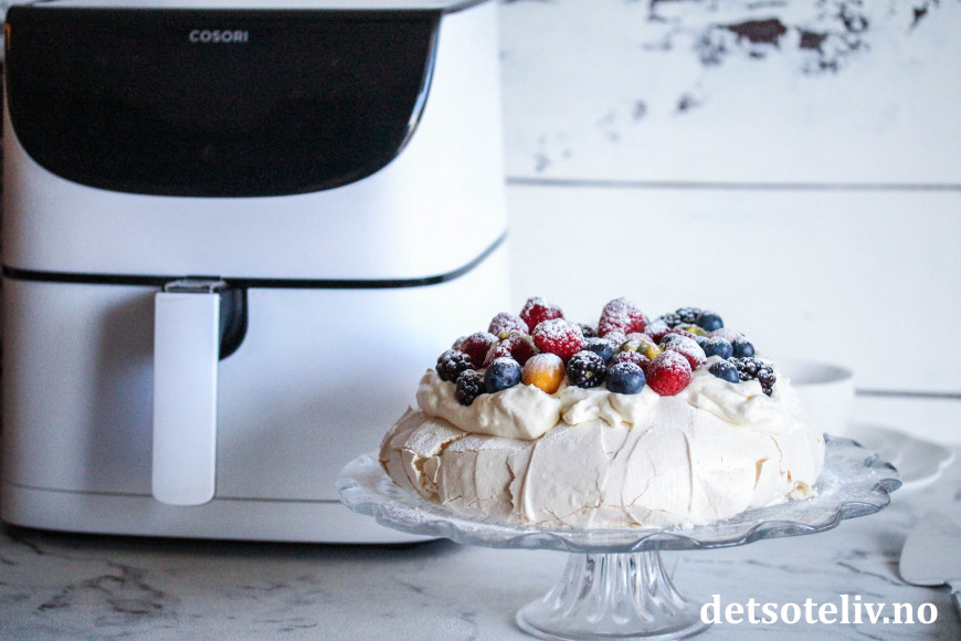 Cosori Airfryer har fått flere best i test-utmerkelser og finnes i flere modeller og farger, se utvalget på Cosori.no. Denne oppskriften på Pavlova kan lages i alle airfryer-modellene til Cosori.