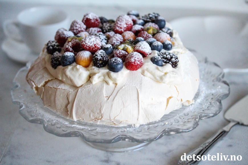 Pavlovaen blir fløyelsmyk og marengsen smelter på tungen.