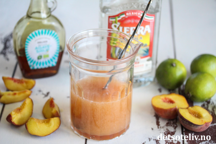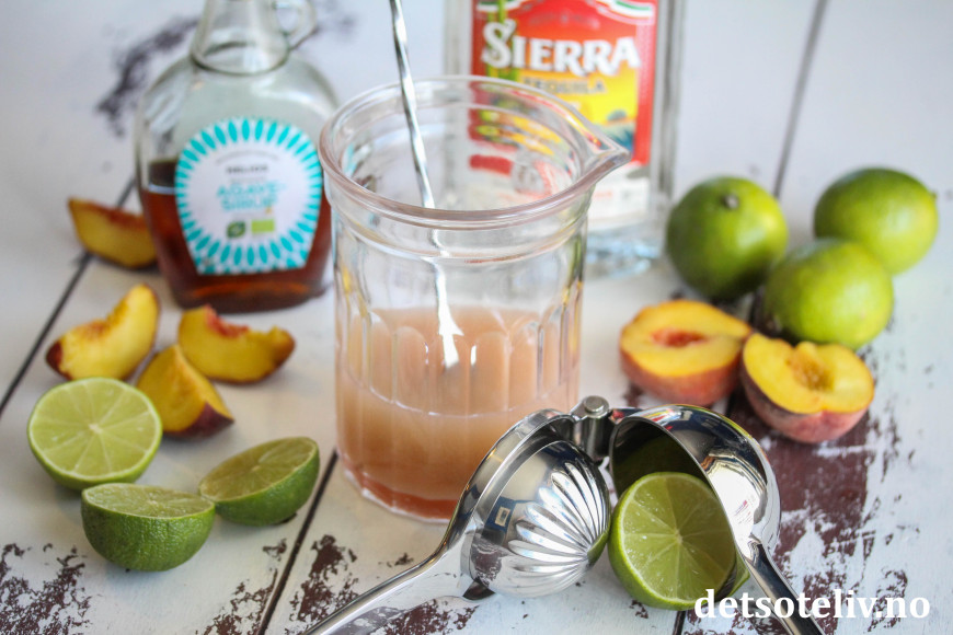 Bland ferskenpuré, den utblandede agavesirupen og presset saft av lime.