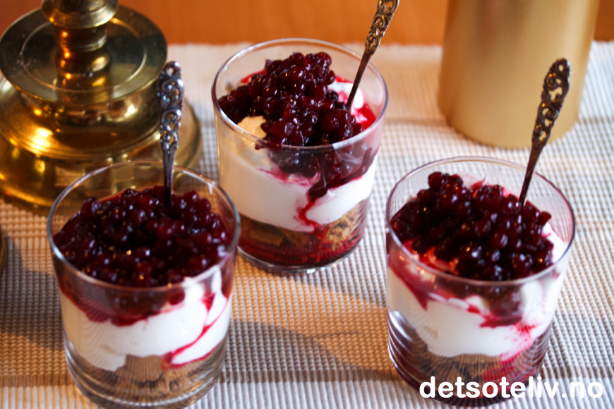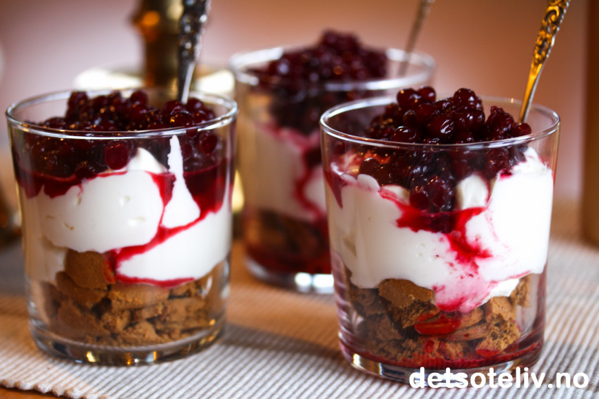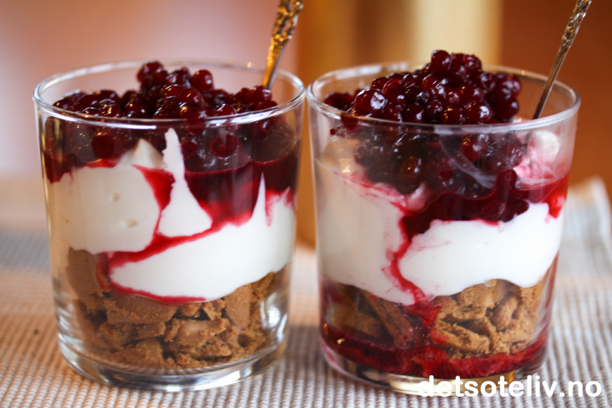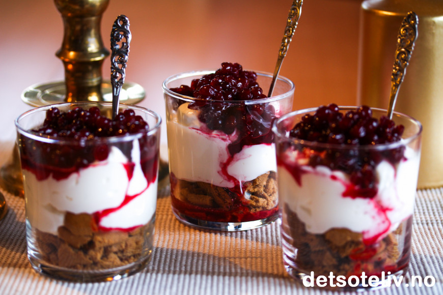 ♥ Smaken blir såklart best om du bruker hjemmelagde pepperkaker og hjemmelagde Rørte tyttebær (som du finner oppskrift på her på Det søte liv). Men det er også godt med ferdigkjøpte varianter.