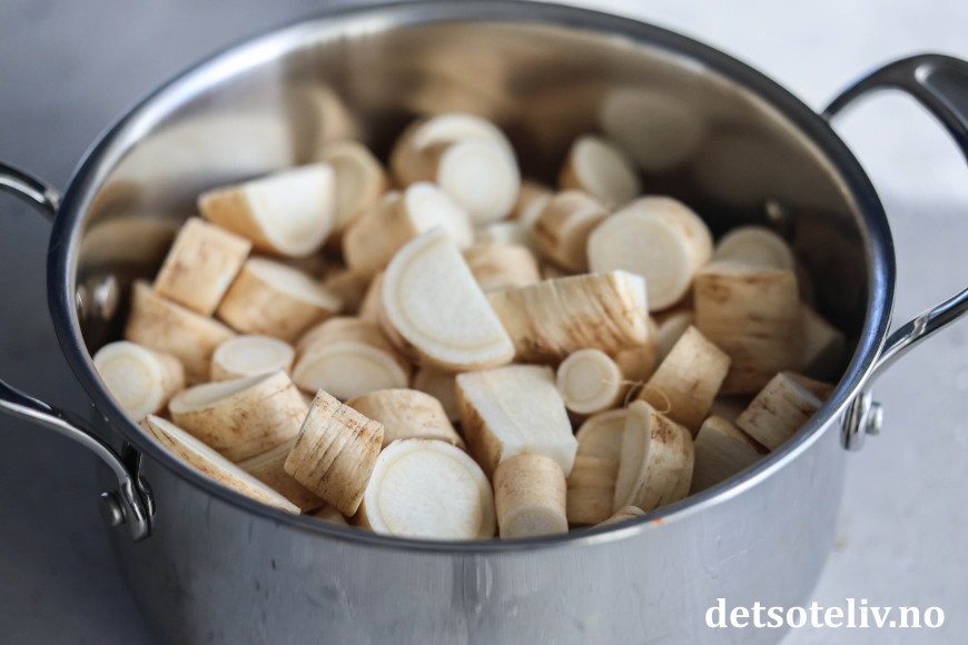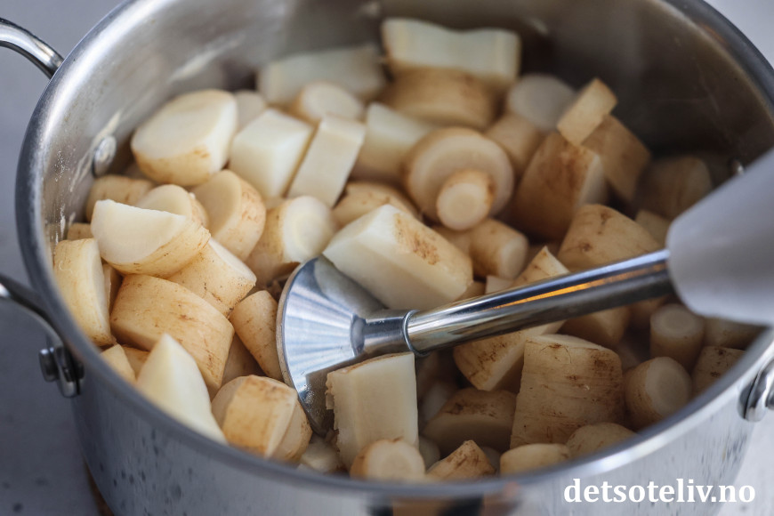 ♥ Smør og salt gir god smak på persillerotmosen, men du kan redusere de angitte mengdene dersom du ønsker det.