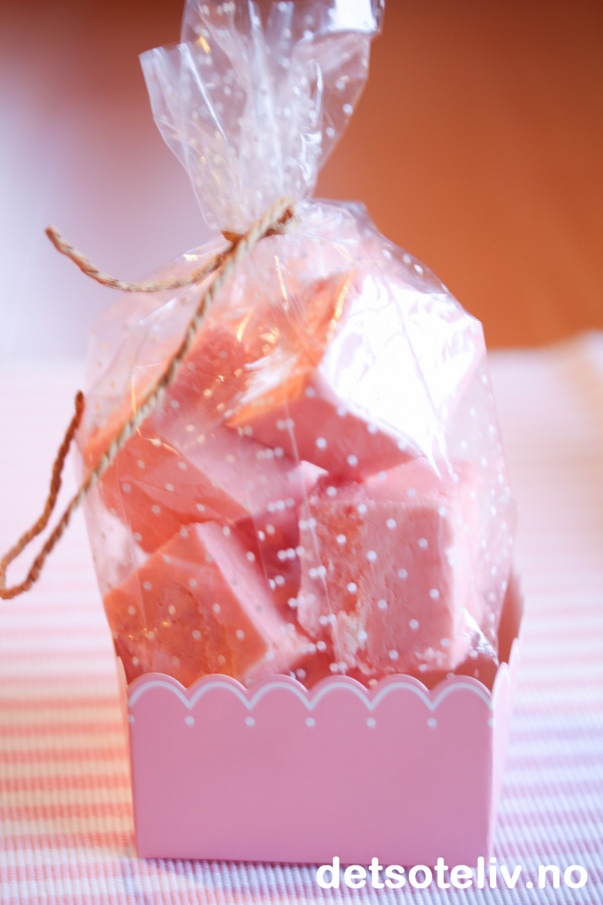Vi har laget fudge i dag, veldig gode men ikke rosa?
