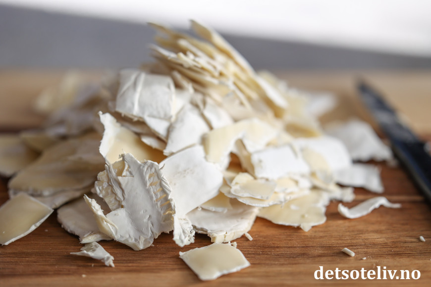 ♥ Skorpen fra osten må du ikke kaste! Ha bitene i en pose som du oppbevarer i kjøleskapet. Serveres som snacks, eller finhakk dem og bruk som dryss oppå mat (f eks godt på pastaretter eller ovnsbakte grønnsaker).