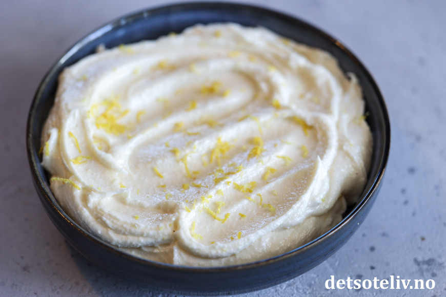Ha briekremen i en skål. Ha på ønsket topping. Jeg startet her med å rive over sitronskall.
