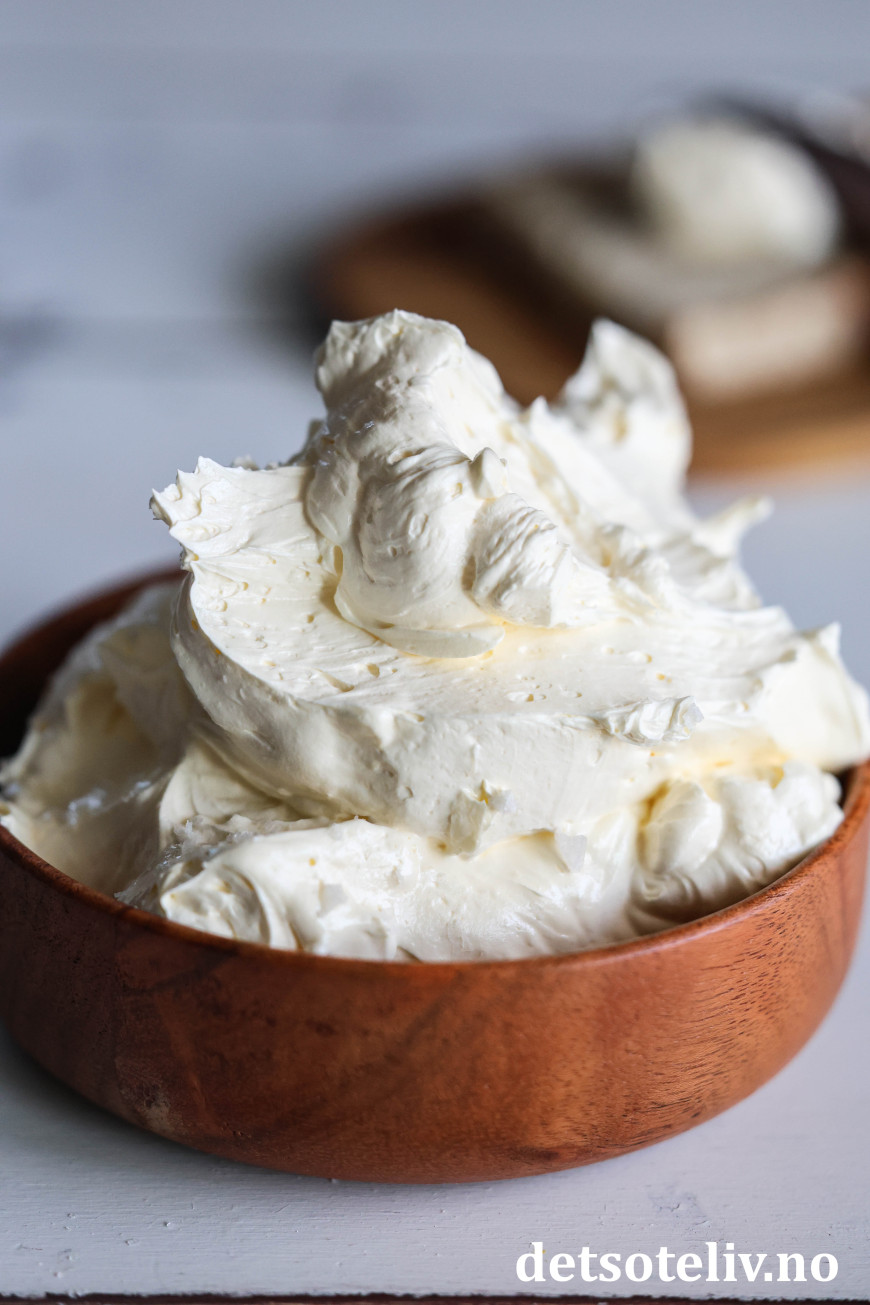 Total pisketid pleier å være ca. 10 minutter, men bare fortsett å piske til du får den luftige konsistensen som du ønsker deg (det skjer ikke noe galt om du pisker smøret for lenge 😊 ).
