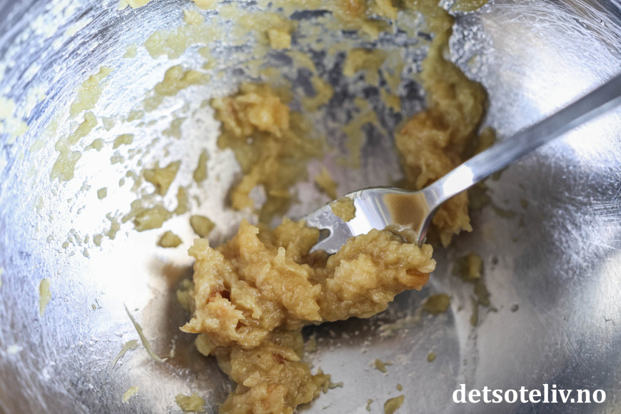 Ha de bløte feddene i en skål og mos dem sammen med en gaffel.