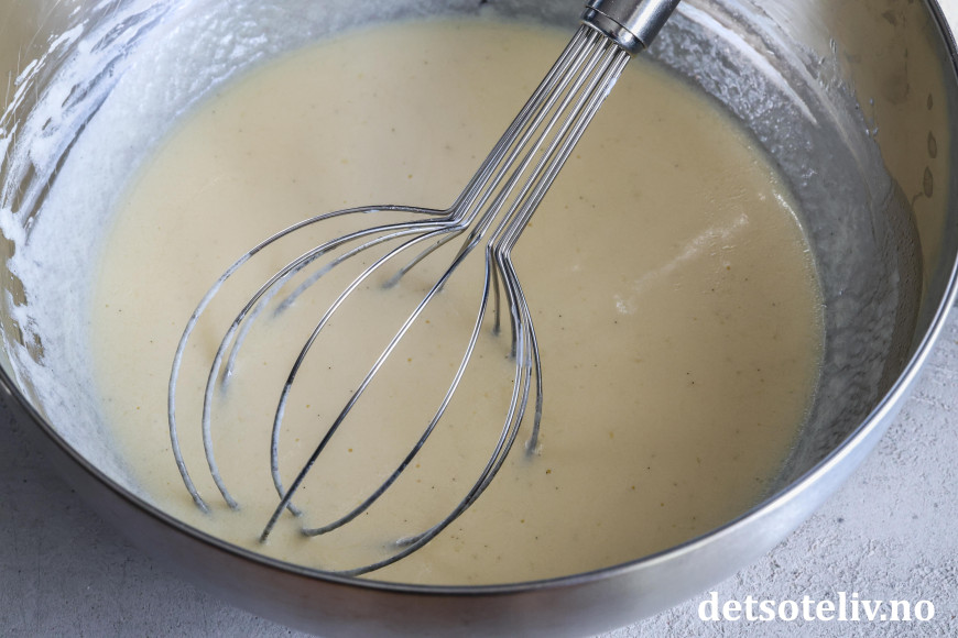 Vend dette deretter sammen med det tørre og rør til du får en klumpfri deig.