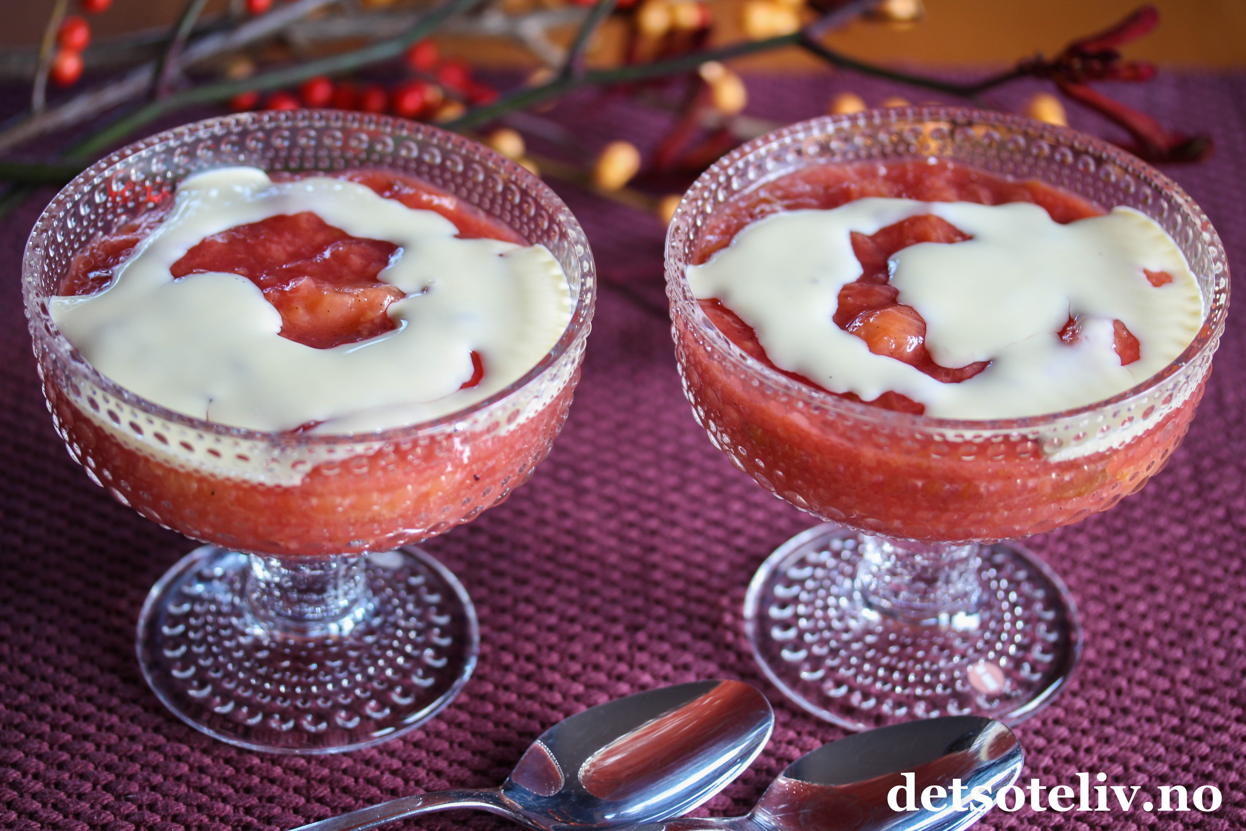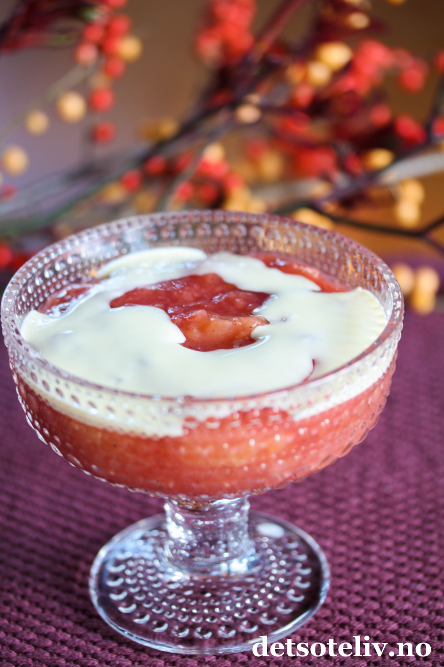 Til servering kan du også bruke vaniljesaus, crème fraîche eller vaniljeis.