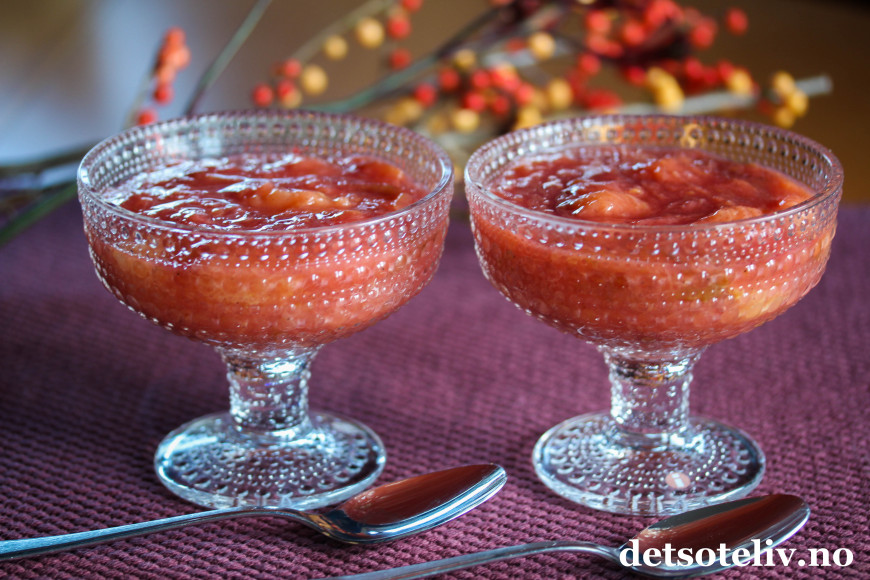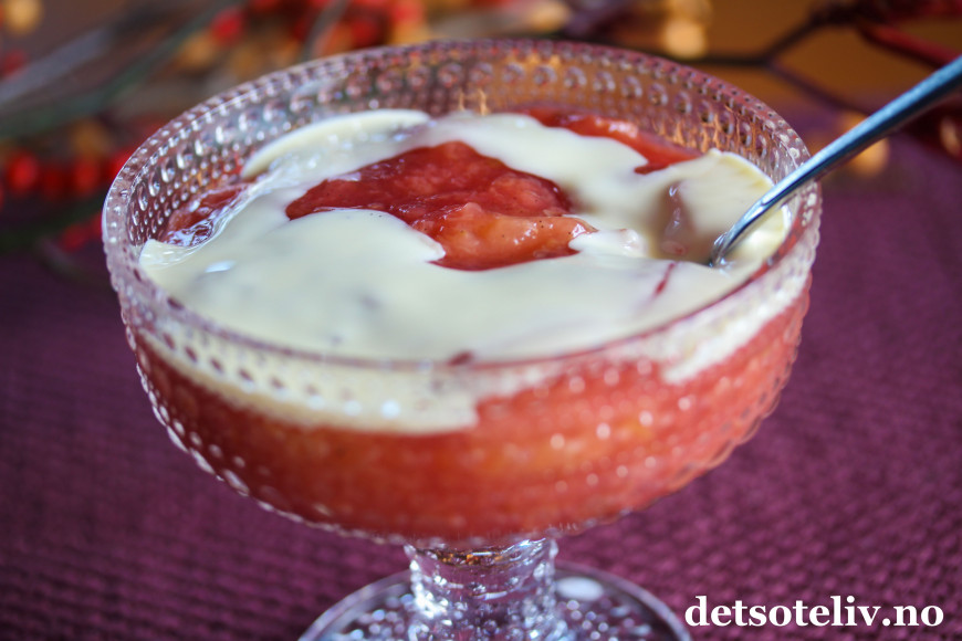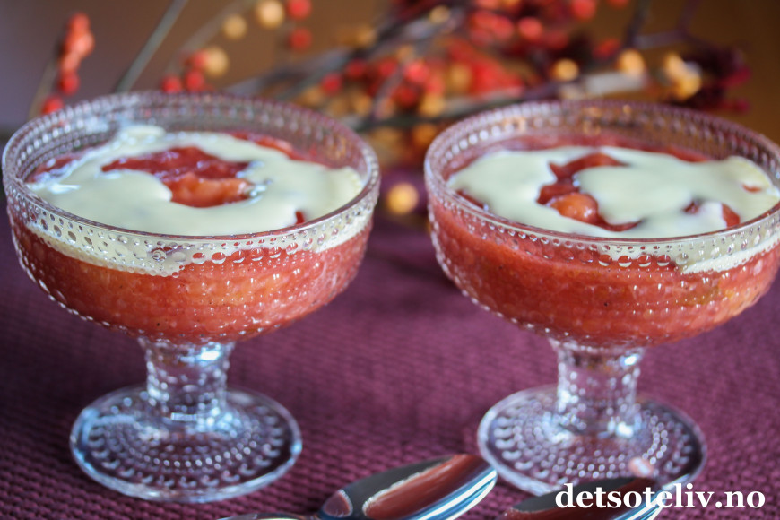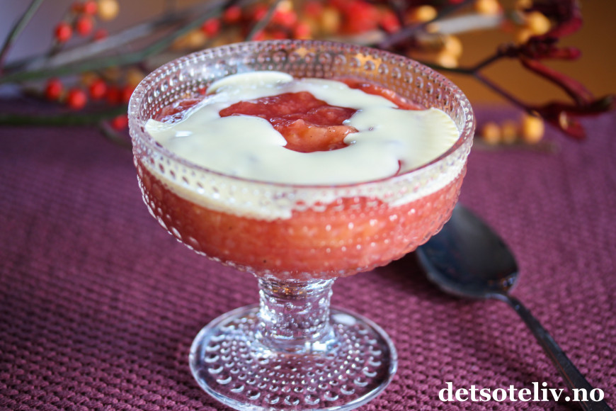 ♥ Til servering kan du også bruke vaniljesaus, crème fraîche eller vaniljeis.