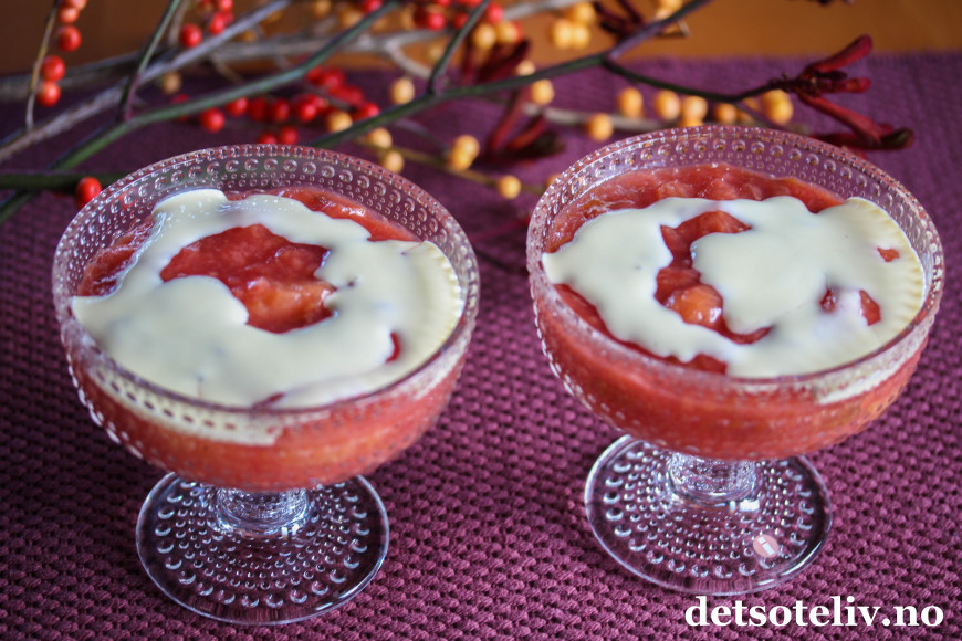 Her er en lettlaget og deilig hverdagsdessert som lages med røde plommer!