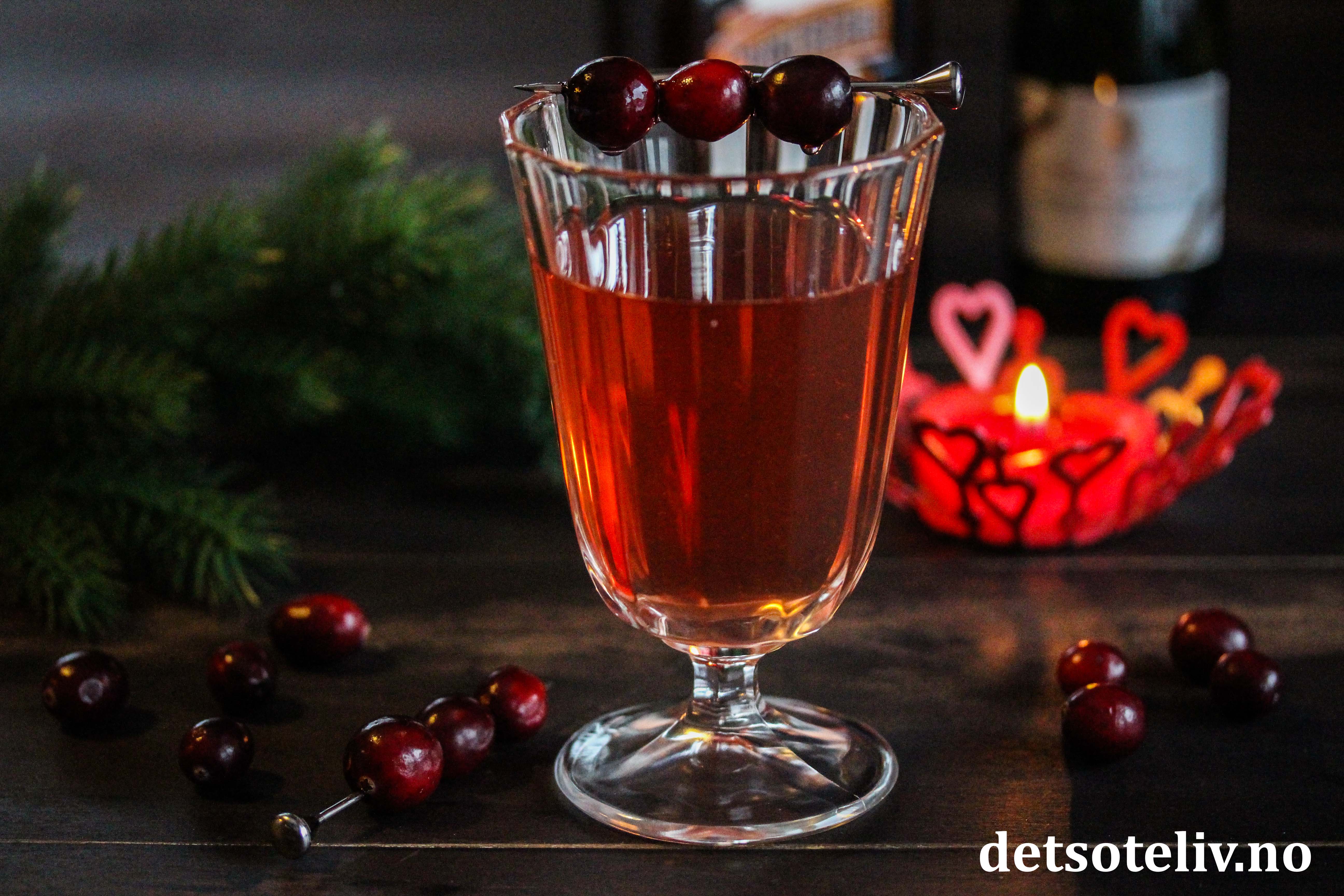 Gjør gjerne klar pynten ved å tre friske tranebær på cocktailpinner.