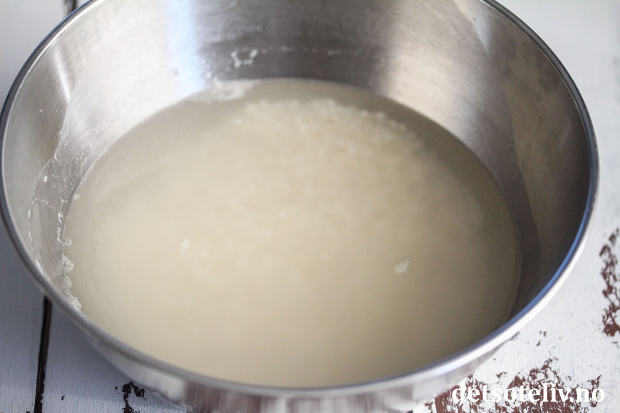 Tilsett 4 dl vann og varm opp til kokepunktet. Legg på lokk og senk varmen. La risen småkoke i ca. 10 minutter. Ta kjelen av platen og la risen bli i kjelen med lokket på til den er romtemperert.