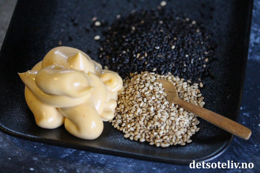 Tilbehør: Chilimajones kan byttes ut med wasabimajones eller hvitløksmajones.