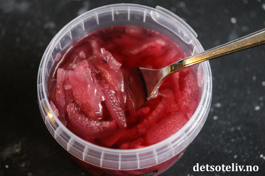 Jeg har her dessuten brukt ferdigkjøpt syltet rødløk: