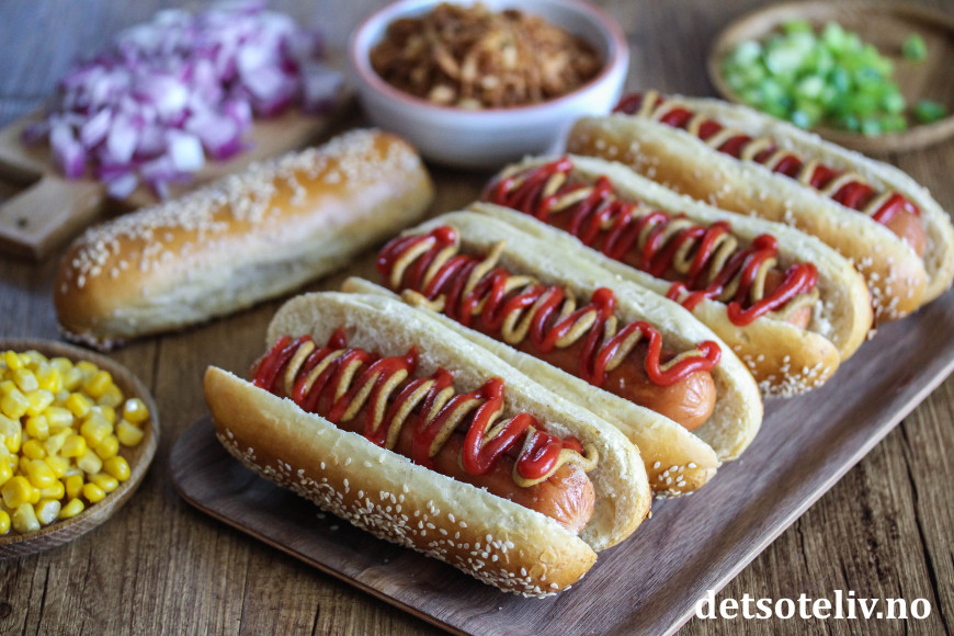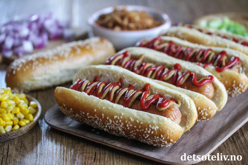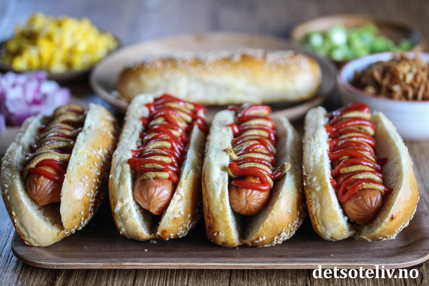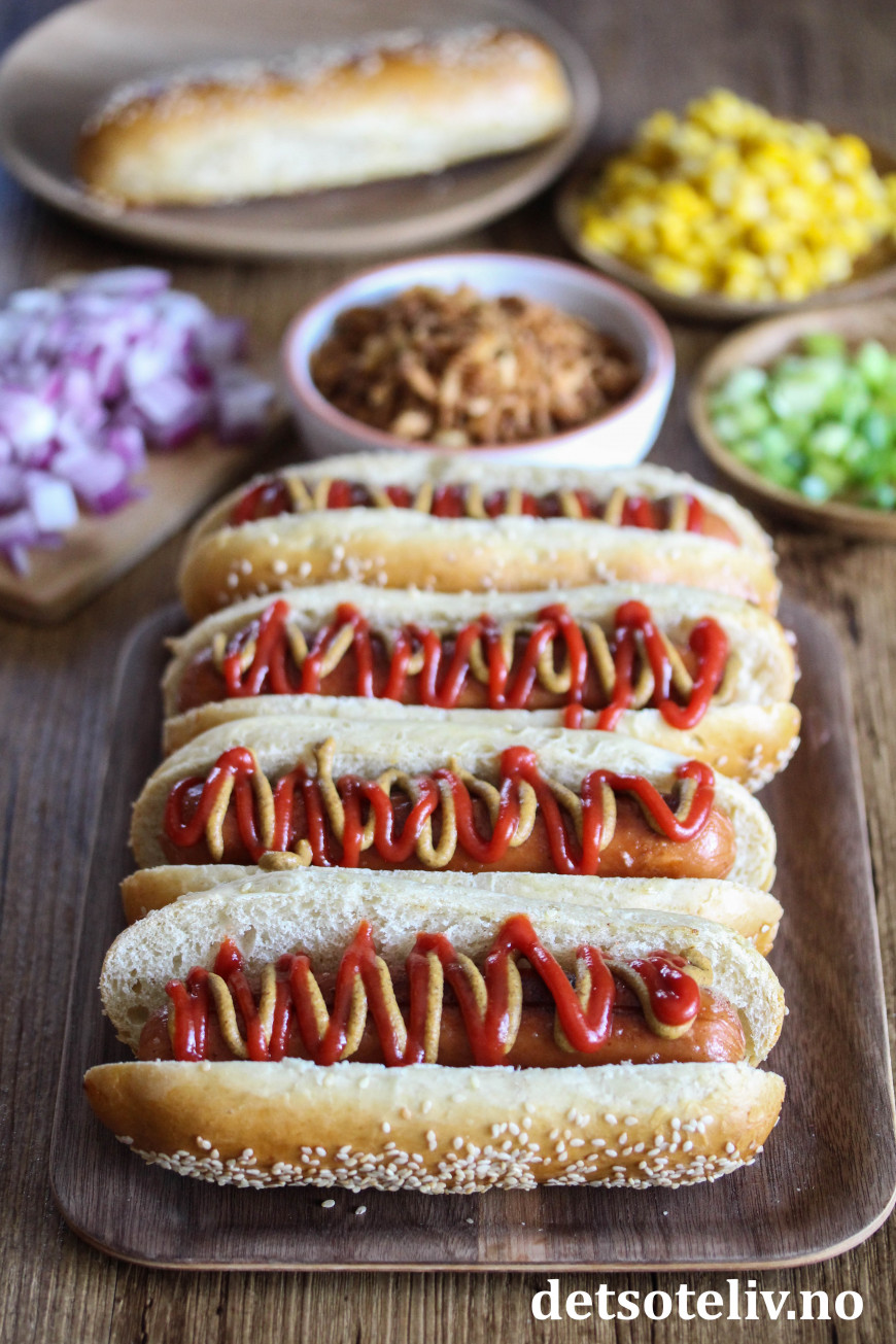 Finn frem mye godt tilbehør og lag din favoritt pølse-i-brød!