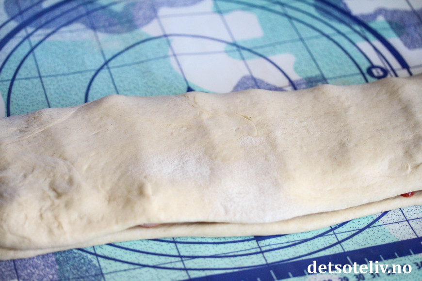 Brett over den andre halvdelen slik at pølsene blir dekket med deig.