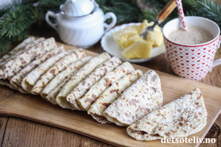 Stek lompene i tørr stekepanne på middels varme. Snu lompene et par ganger, slik at de får lysebrune flekker på begge sider. Legg de stekte lompene oppå hverandre med et klede over, slik at de holder seg myke.