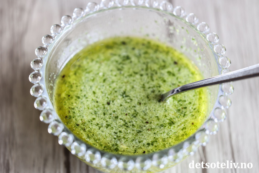 Bland dette sammen med pestoen så du får en herlig pestodressing.