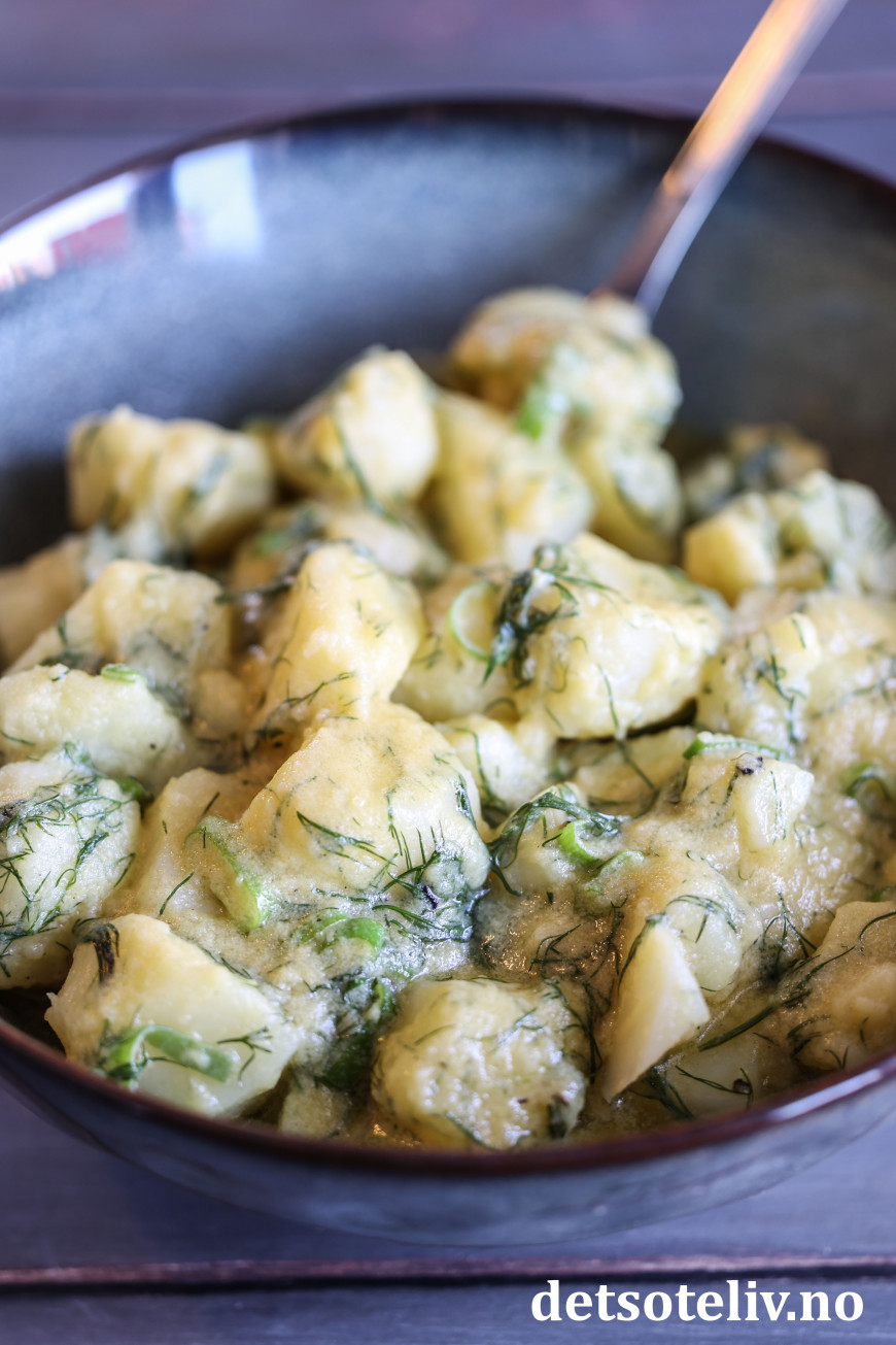 Dette er en enkel, men veldig god potetsalat med smør, dill og vårløk.