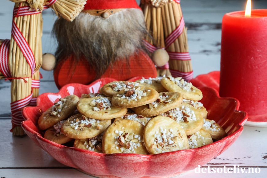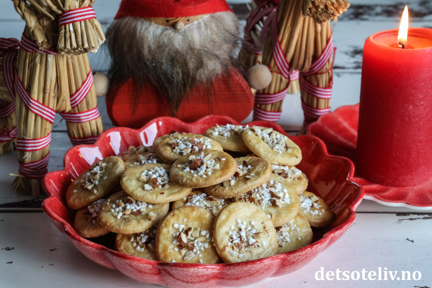 ♥ Det er meningen at kakene skal blir sprø og litt flakete, så derfor bør du kjevle ut deigen tynt. Følg med under stekingen, for jo tynnere du lager kakene, jo kortere steketid.