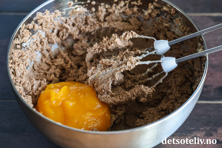 Mål opp ønsket mengde gresskarpuré (til denne oppskriften trenger du 300 gram), og oppbevar resten i kjøleskapet og bruk til å lage noe annet godt.