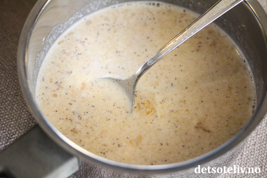 Varm opp blandingen under omrøring til melken når kokepunktet.