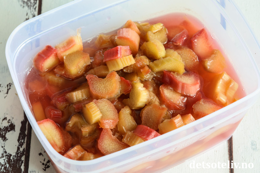 ♥ Pass på at rabarbrabitene ikke koker i sukkerlaken så lenge at de går i oppløsning. Du kan alternativt ha rabarbrabitene og sukkerlake i en ildfast form og ovnsbake dem ved 200°C i ca. 15 minutter.