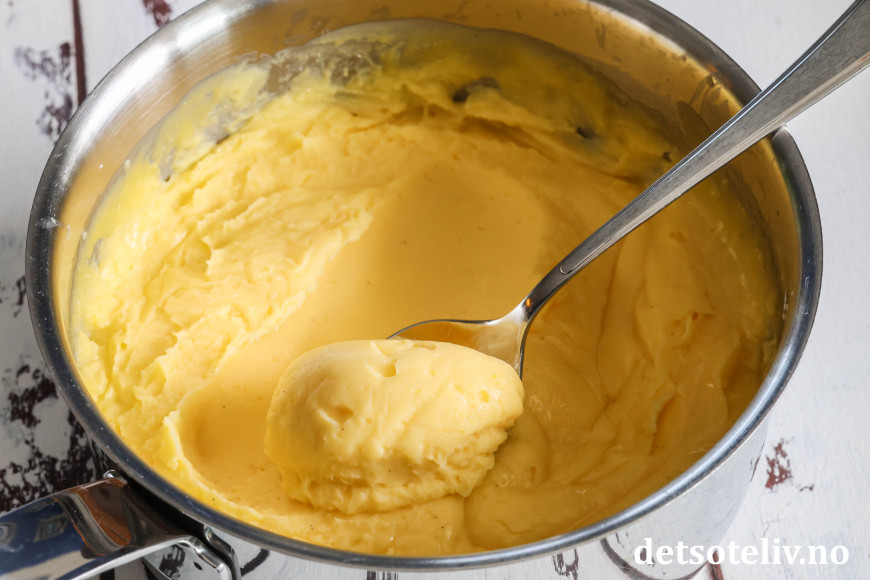 Ta kjelen av platen og la vaniljekremen avkjøles til romtemperatur. Rør av og til.