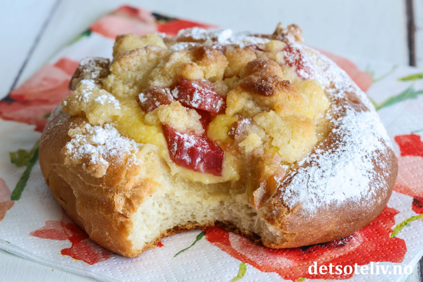 ♥ Se også Blåbærboller med vaniljekrem og smuldretopping, som er basert på samme oppskrift.