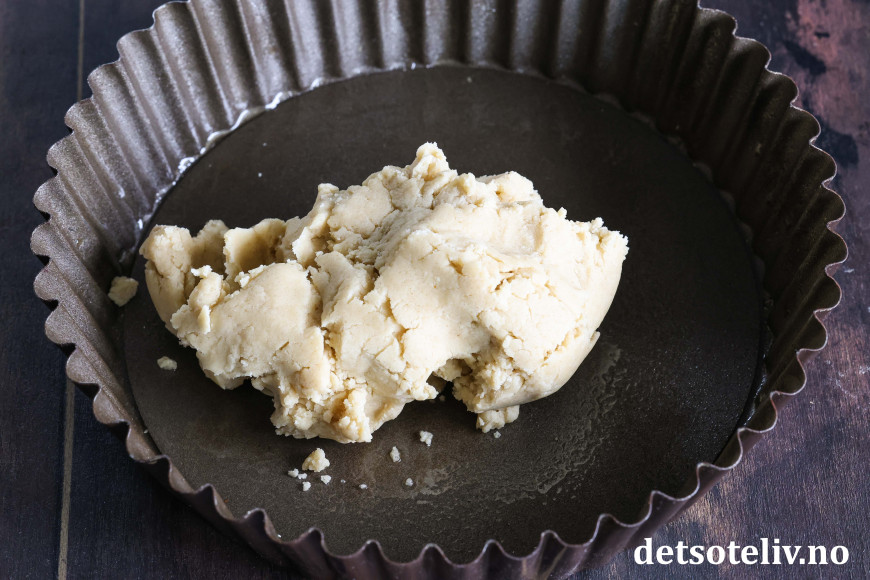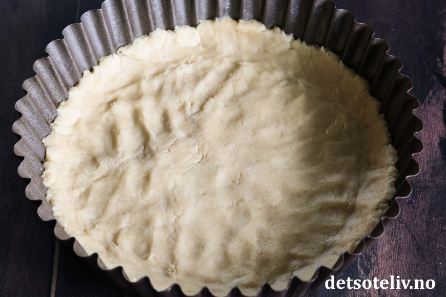 Trykk deigen ut i bunn og kanter på en smurt paiform (24 cm i diameter).