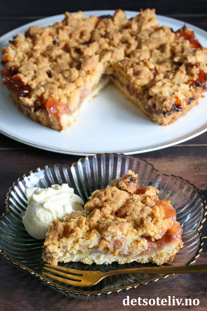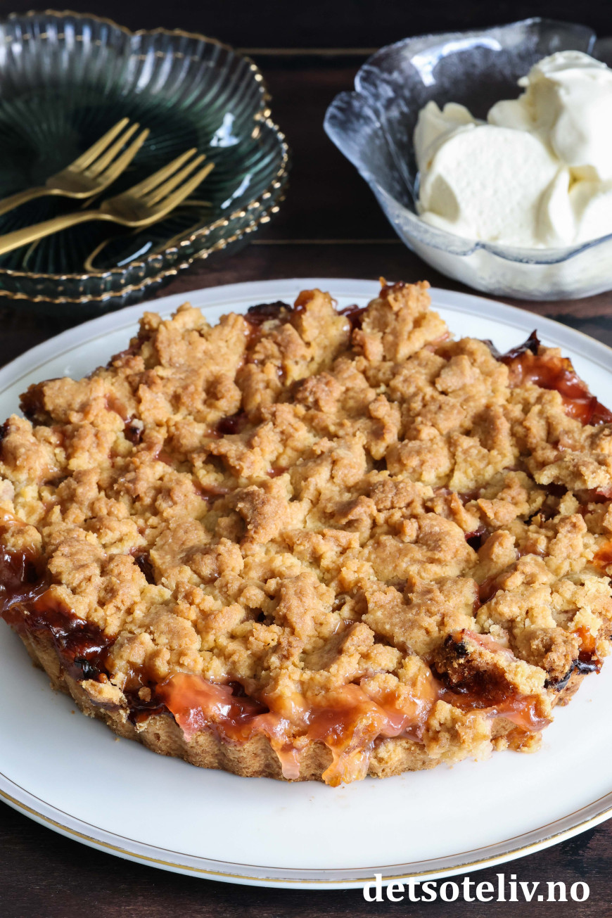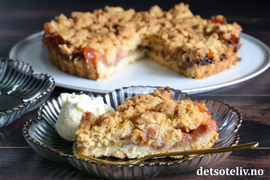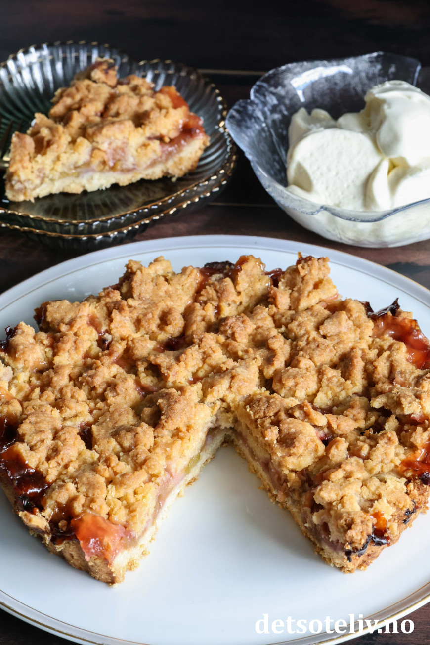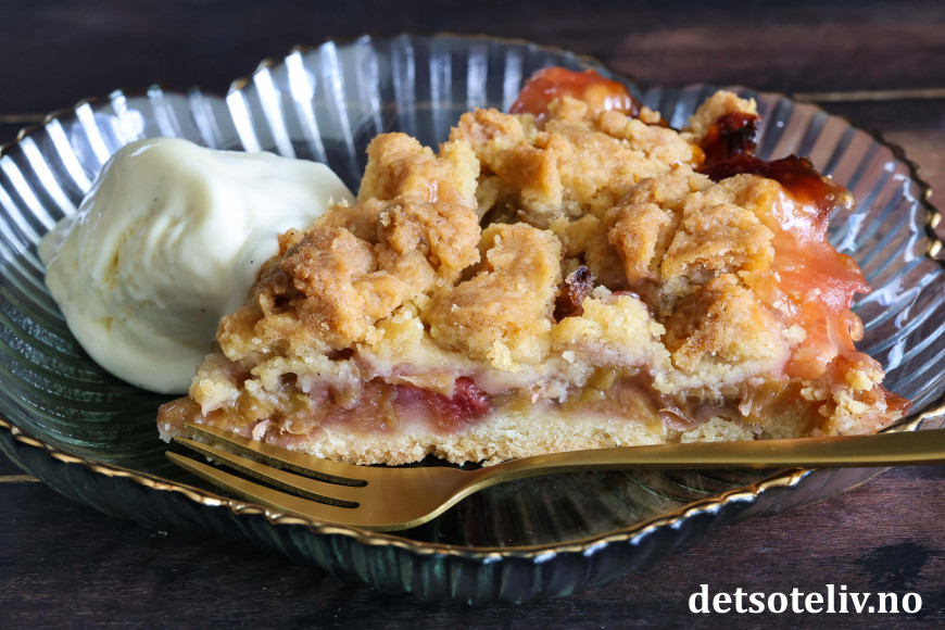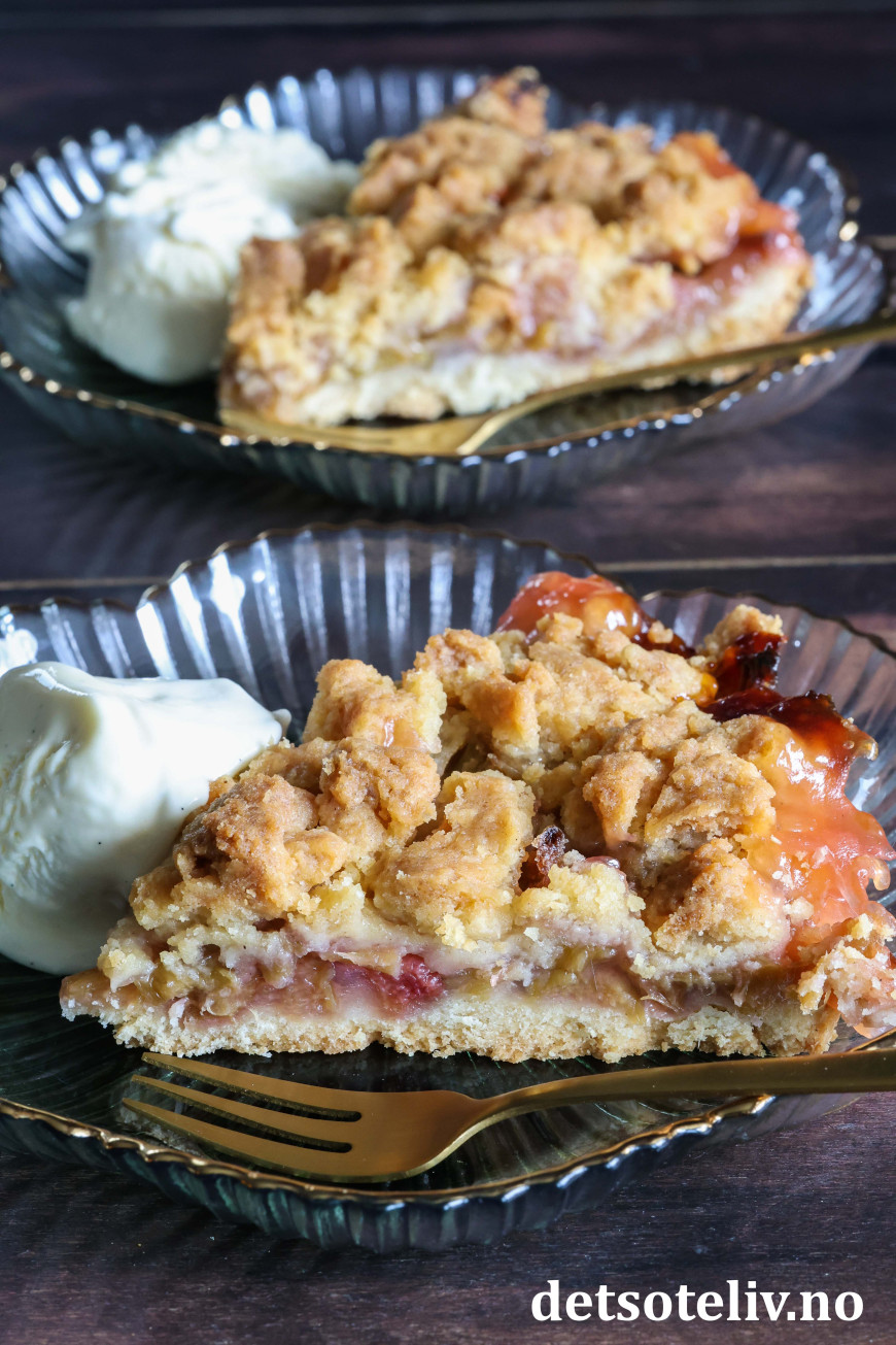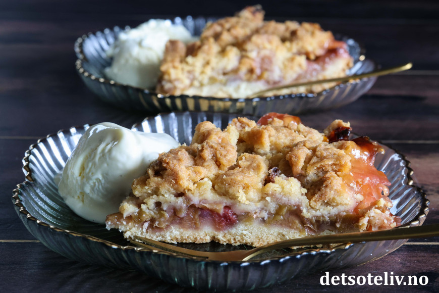 Rabarbrapai med smuldretopping er kjempegod som den er eller sammen med vaniljeis! 😋