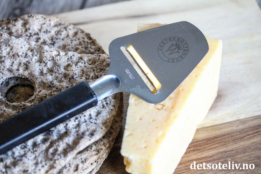 ♥ Svensk Västerbottensost har kraftig og litt salt smak, som passer veldig godt til det søte syltetøyet. Fås kjøpt i butikker med ostedisker, blant annet hos Meny.