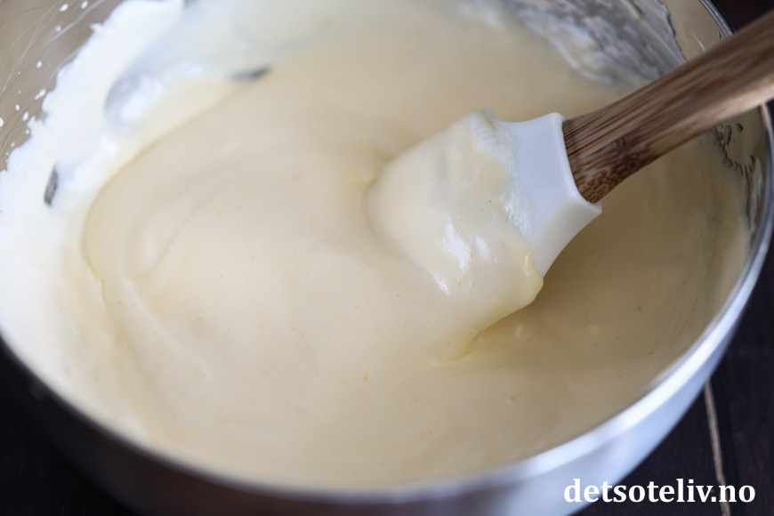 Ha råkremen i en serveringsbolle og sett kjølig frem til servering.