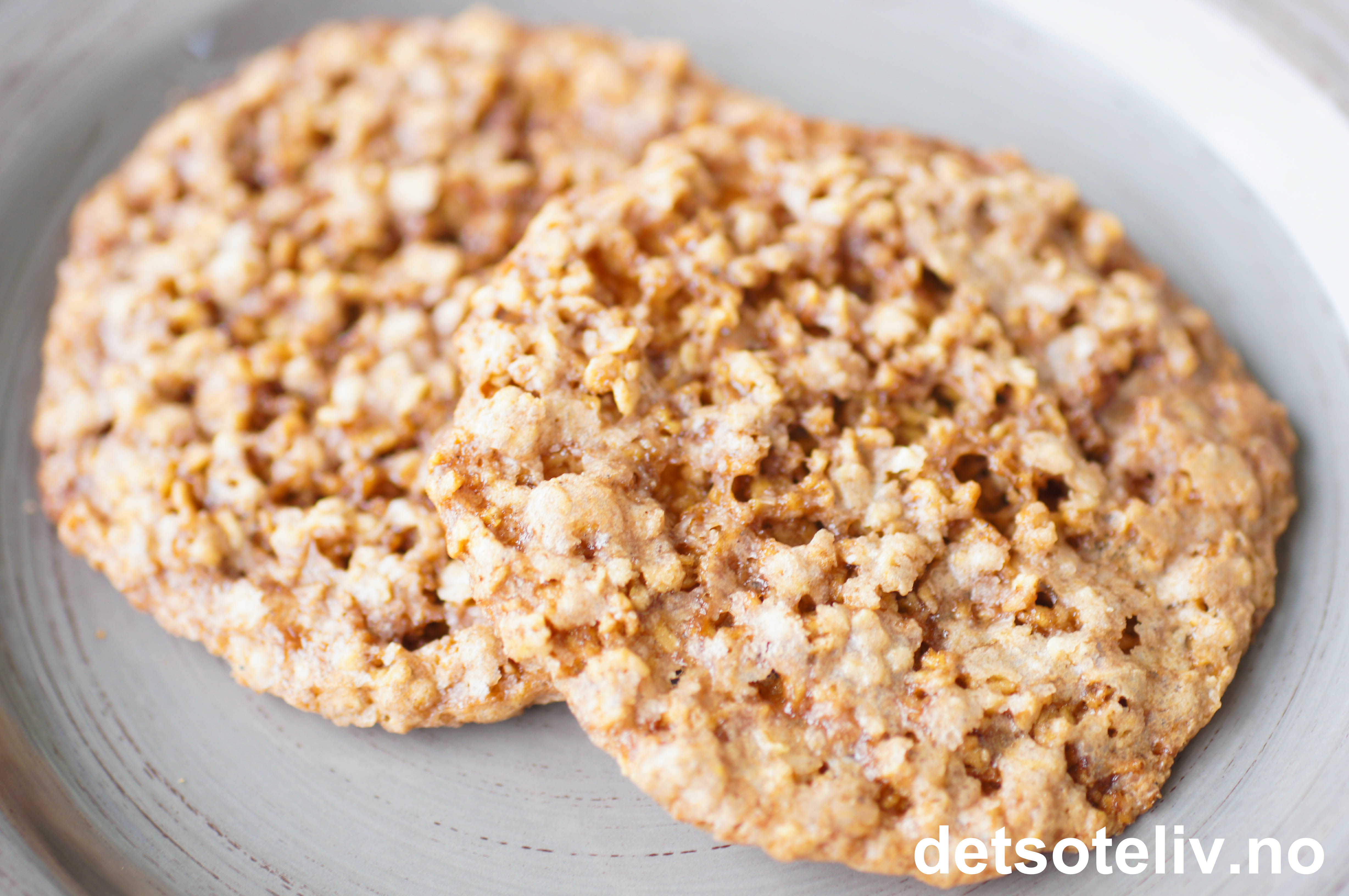 Dette er en deig som først virker alt for tynn i konsistensen, men som etter hvert stivner til tykk deig. Dette skjer fordi havregrynene sveller opp etter hvert. Du må vente med å sette topper til deigen er såpass tykk at den lar seg forme. Dersom deigen står for lenge slik at den blir helt tykk kommer ikke kakene til å flyte skikkelig utover under stekingen. Du må da i stedet klemme kakene flate med fingrene før de stekes.