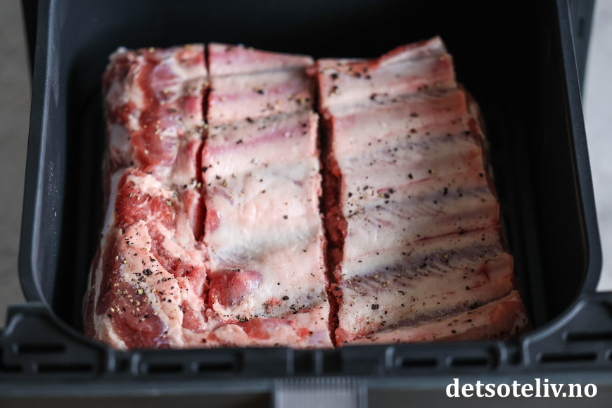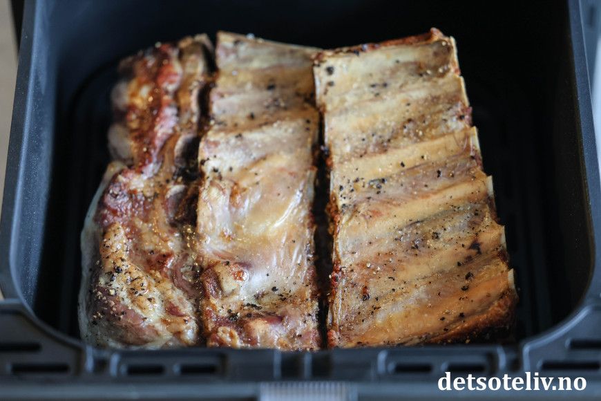 Forvarm airfryer ved 200°C i 5 minutter først, før du legger ribben i den.