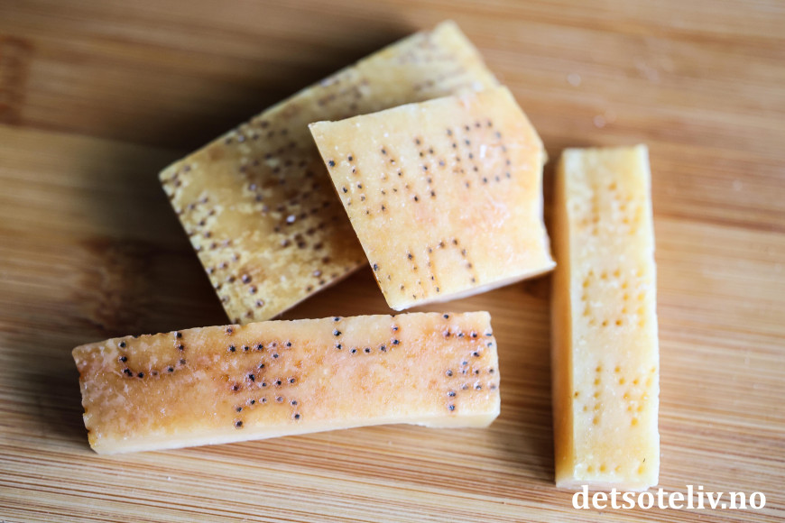 Ta ut parmesanskalk(ene) og laurbærblad.