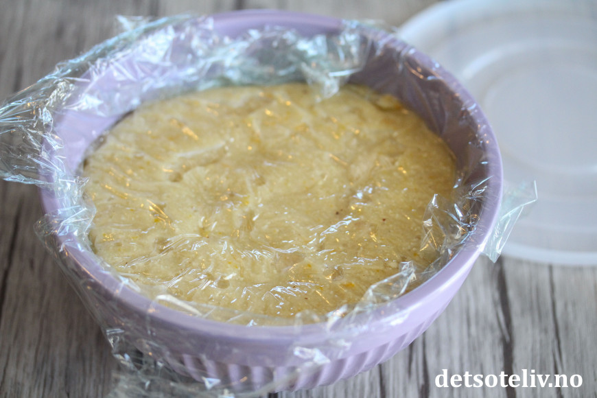 Pakk deigen inn i plast og sett den i kjøleskapet til dagen etter.