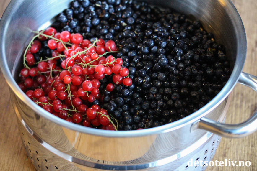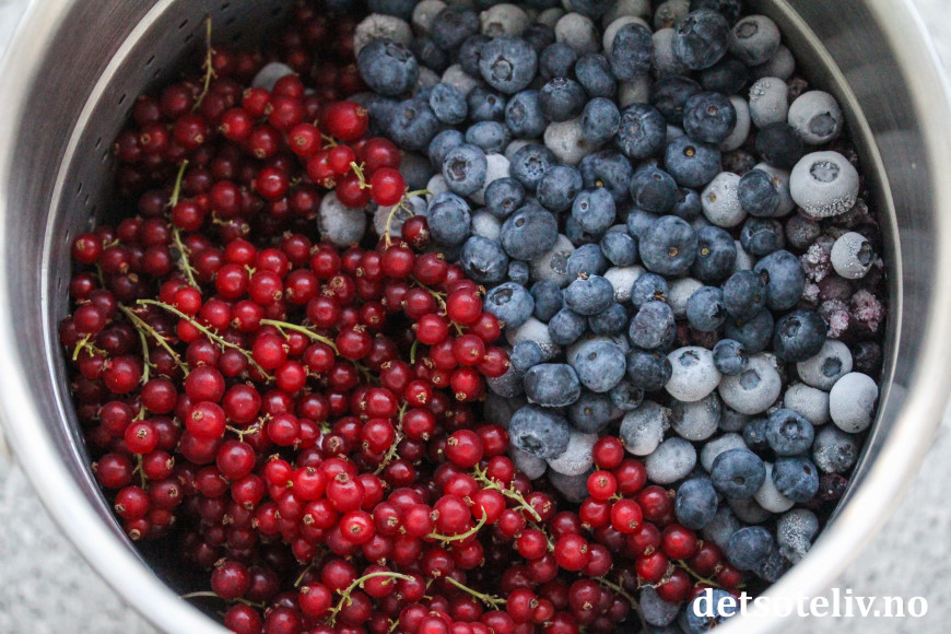 Jeg har også testet å bruke en kombinasjon av friske/frosne rips og frosne blåbær (ikke skogsblåbær) som jeg hadde i fryseren.